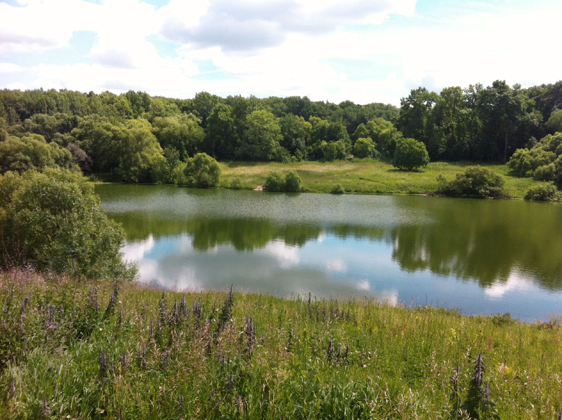 Единственный существующий в наши дни пруд находится на слиянии двух лощин. Его правильнее называть средним прудом.