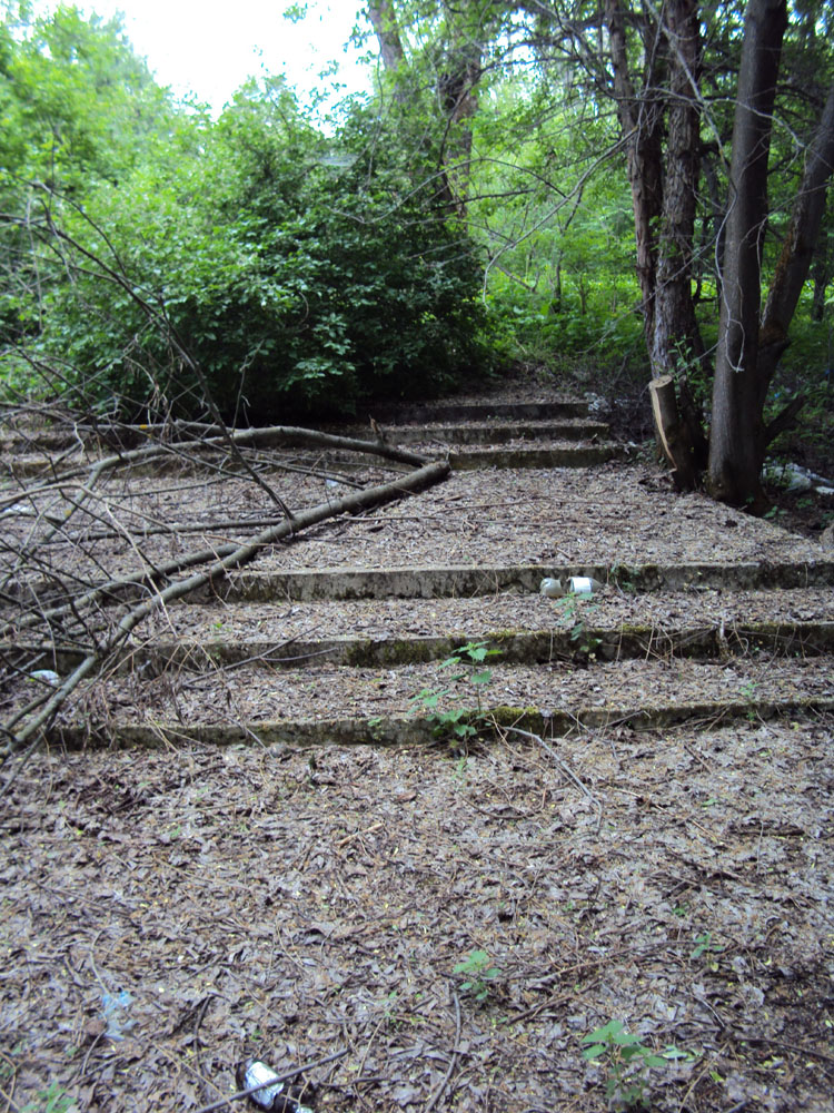 После того, как построили пионерский лагерь, тропинка стала пользоваться популярностью в качестве места прогулок. Тогда пионерам придумали подходящее развлечение: залить тропинку бетоном. И работа закипела. В небольшие опалубки клали щебень, разводили раствор, и пионеры вместе с вожатыми из вёдер заливали бетон. Вероятно, дело шло к осени, потому что, по воспоминаниям очевидцев, в опалубках поверх щебня то там то сям лежали первые жёлтые листья.