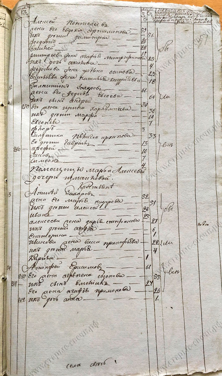 Свечей1. Александра Ивановна, возможно, была дочерью жившего в Свечах подканцеляриста Ивана Родионовича Ценина, и на неё была записана земля, перешедшая с ней в качестве приданого.