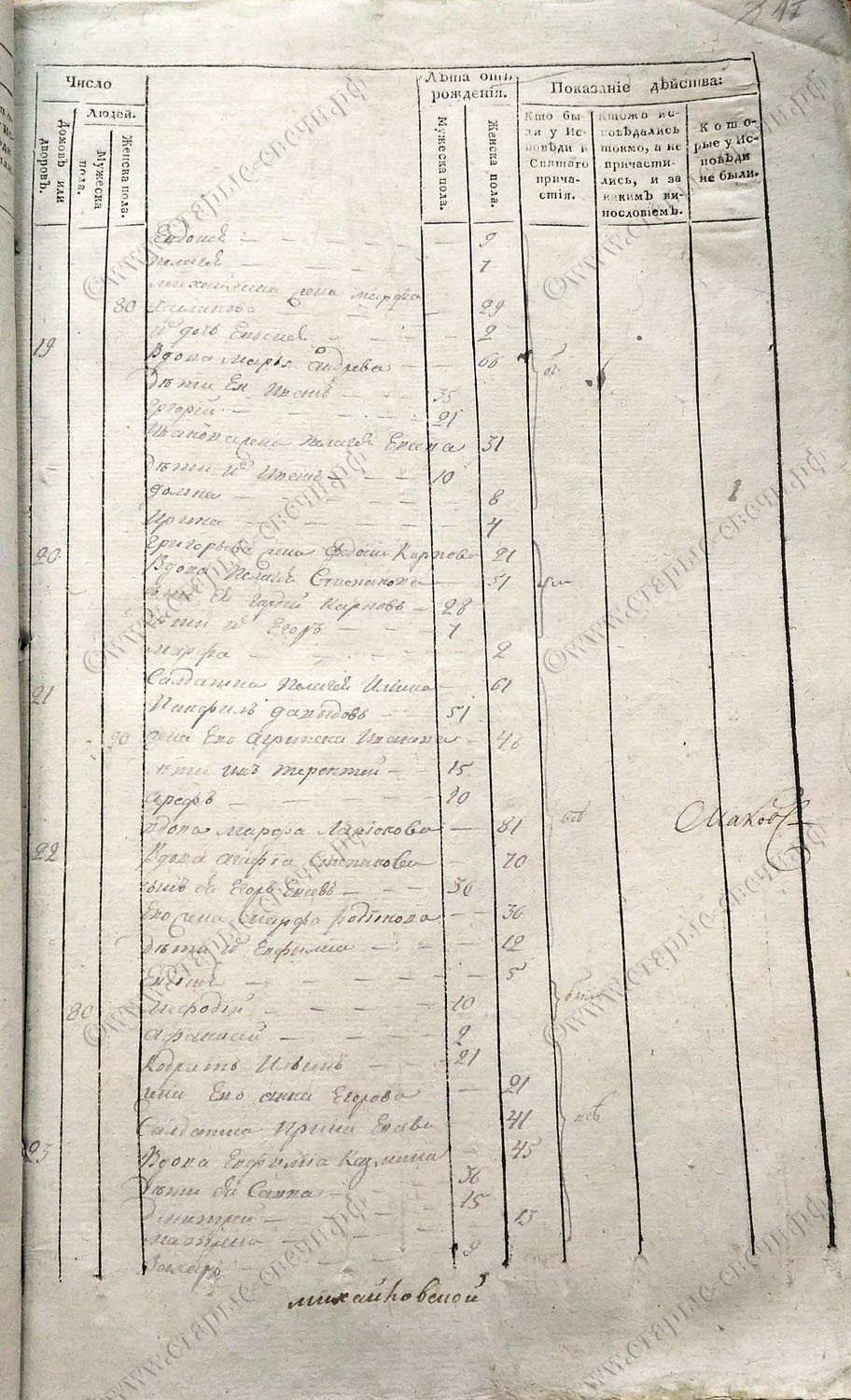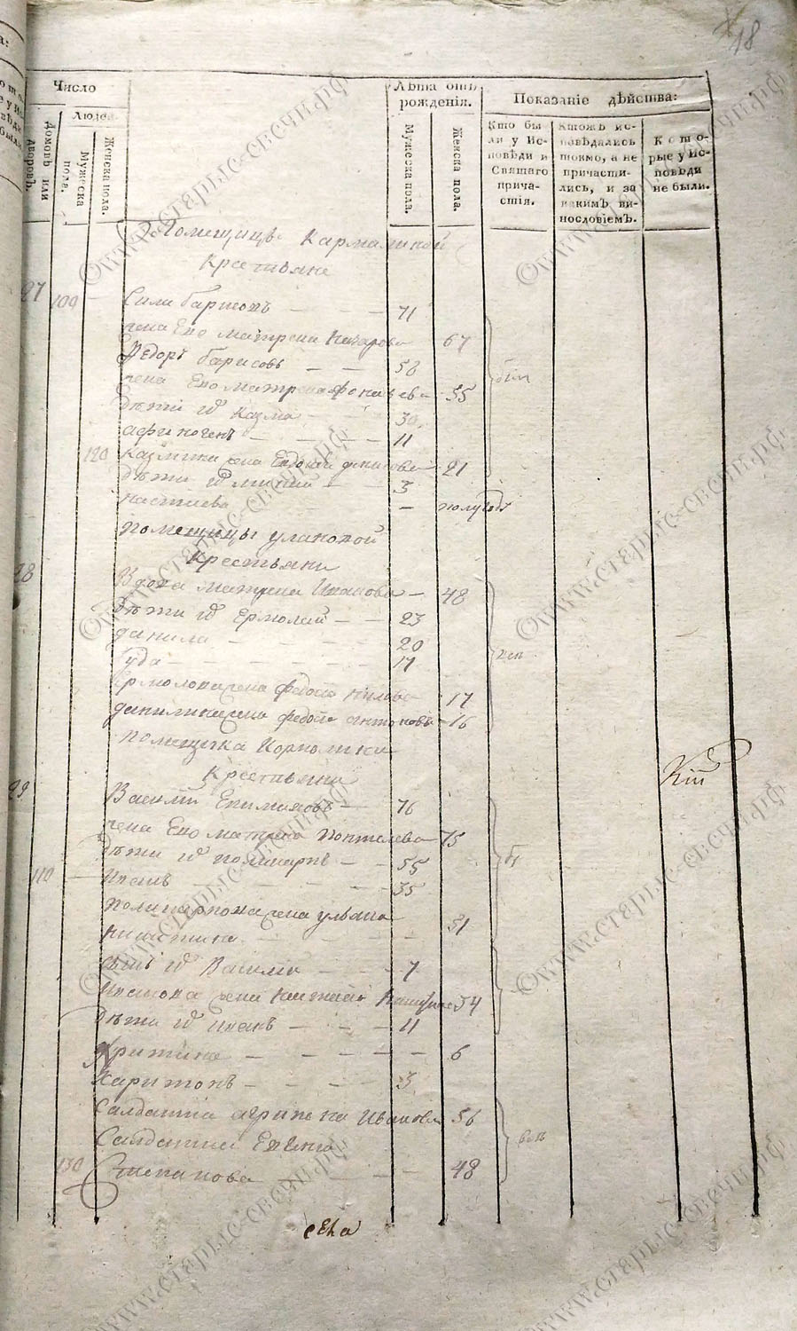 На момент утверждения межи поселение на обмежёванном участке состояло из 26 дворов села Свечи, в которых по последней, восьмой, ревизии за поручиком Таптыковым числится мужского пола 97 душ.