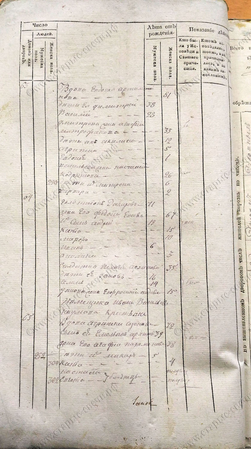 – вдова Степанида Иванова (1825 г., 70 лет);
