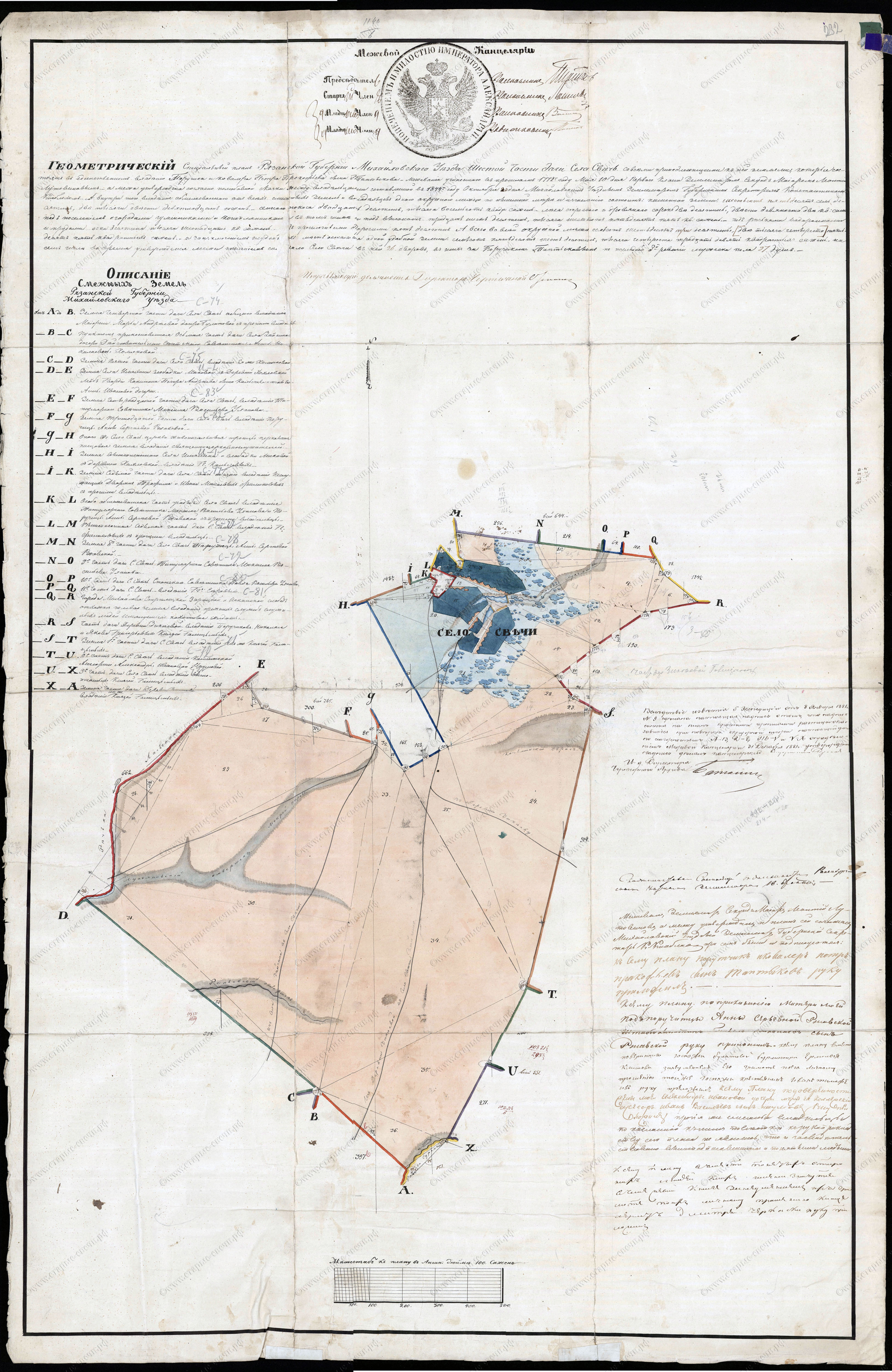 Геометрический специальный план шестой части села Свечи Михайловского уезда Рязанской губернии со всеми принадлежащими к ней землями, которые состоят в единственном владении поручика и кавалера Петра Прокофьевича