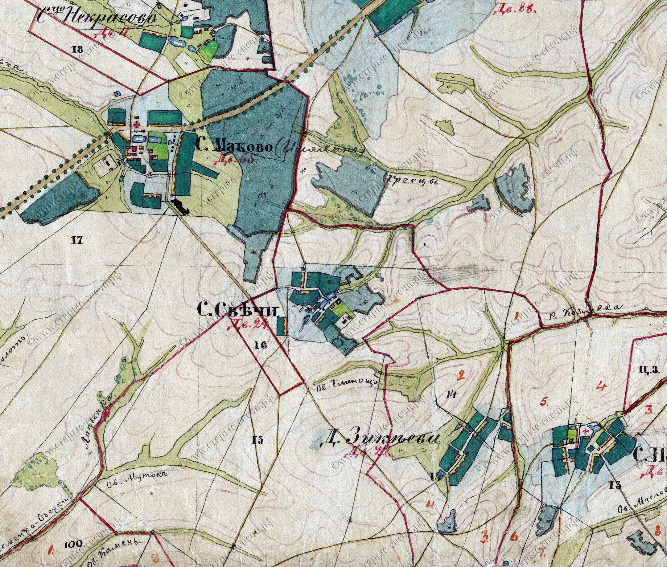 От U до X: третья часть земли села Свечи, принадлежащая уже упомянутым князьям Голицыным.