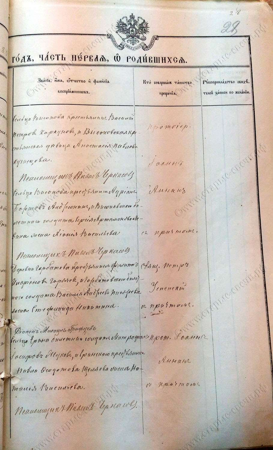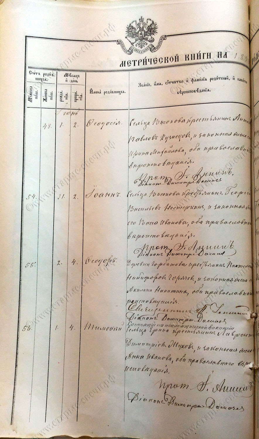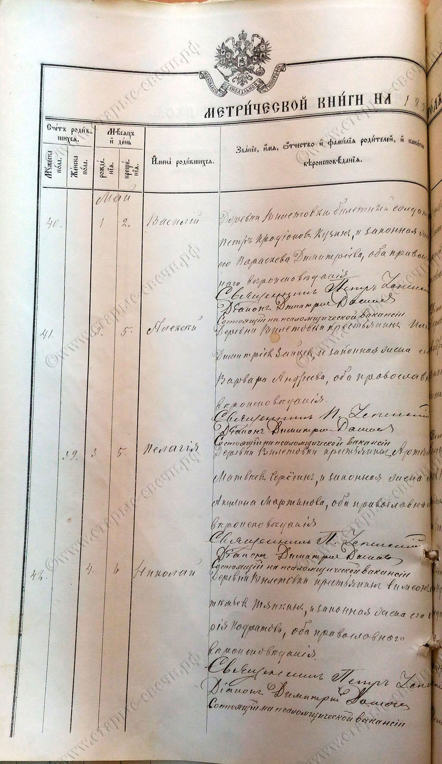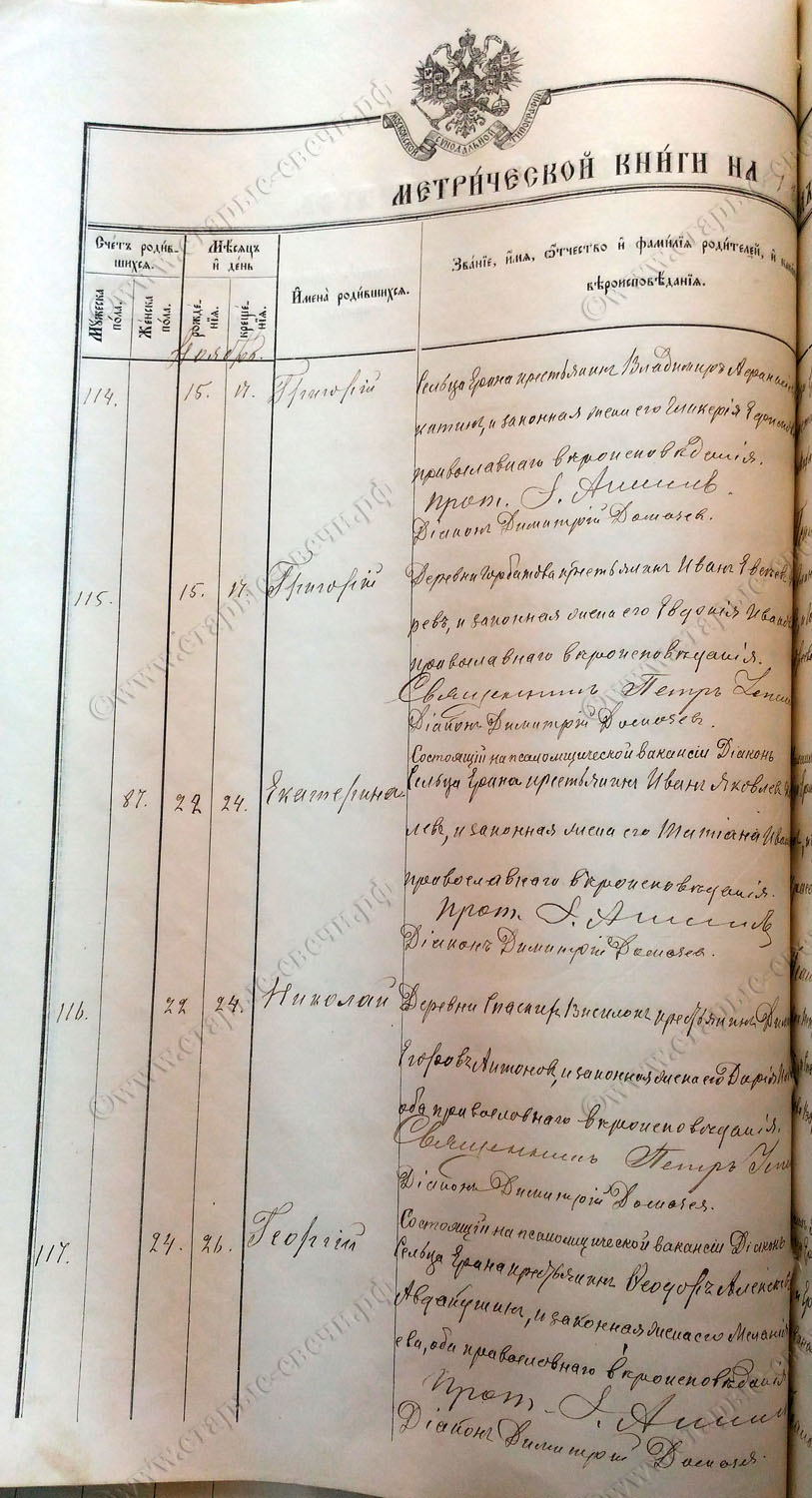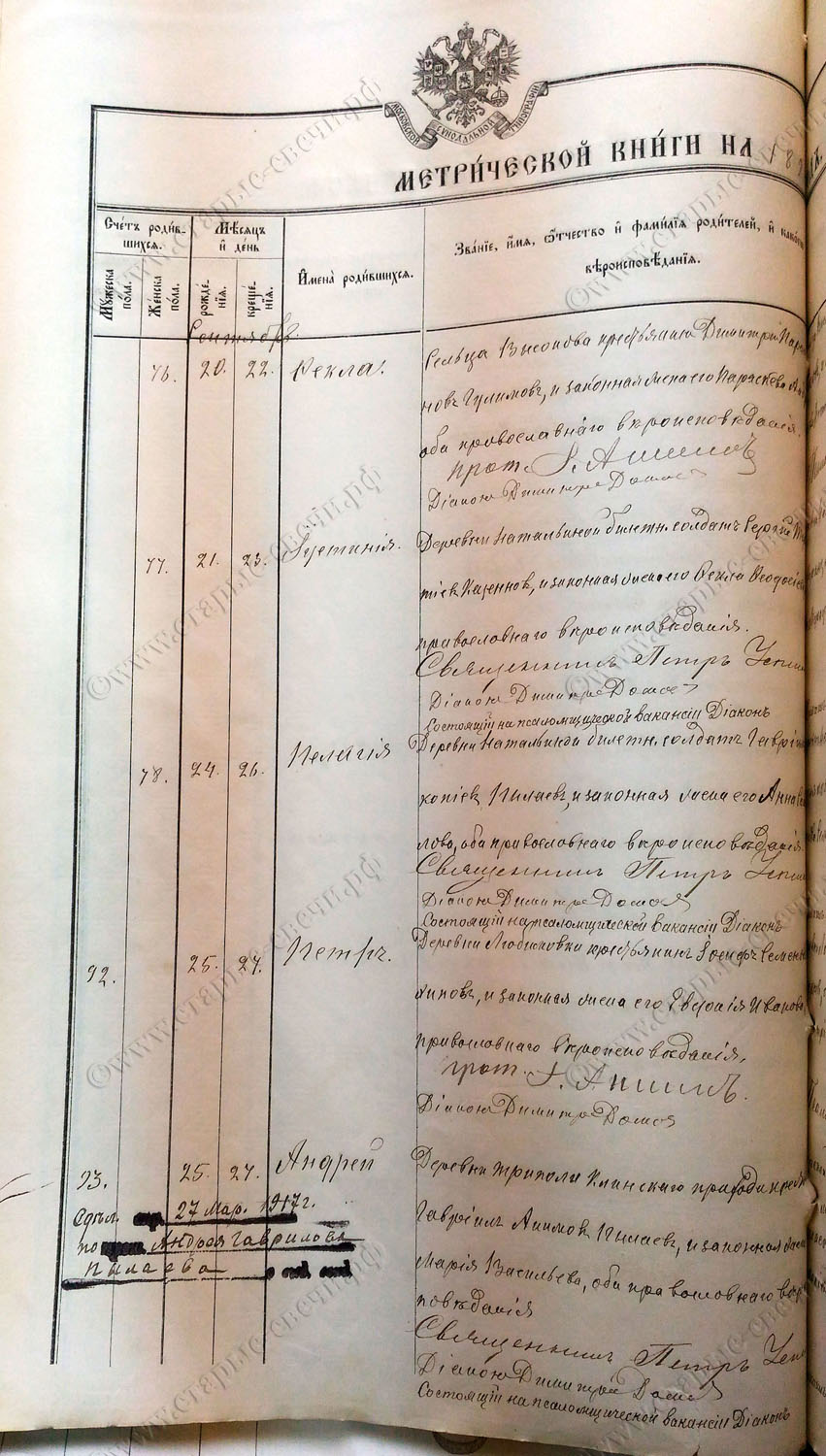 У мещанина Василия Степановича Низовского в 1877 году в Свечах родился сын