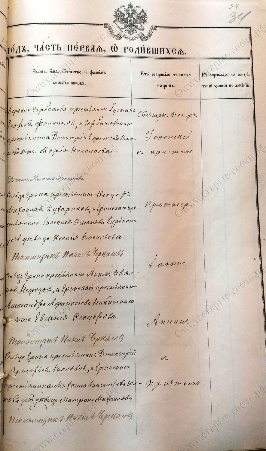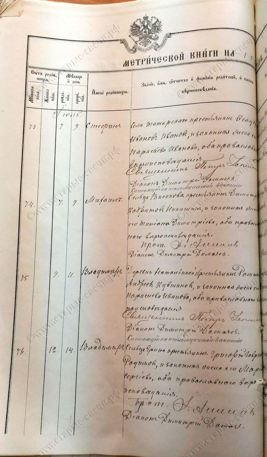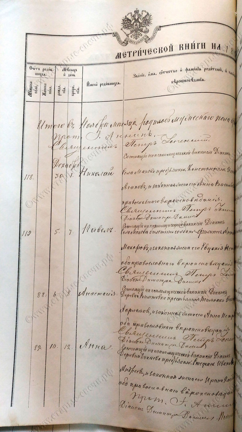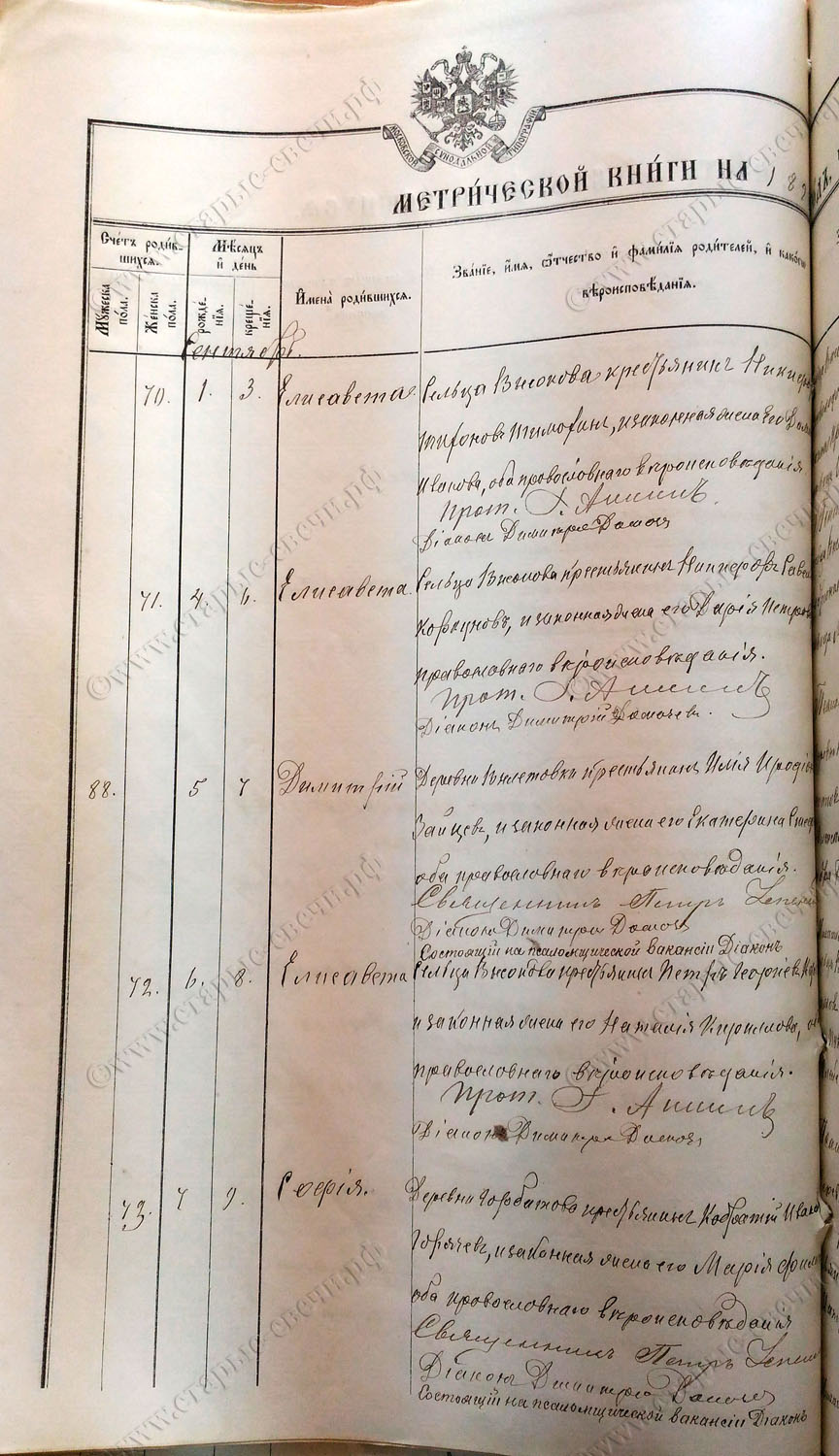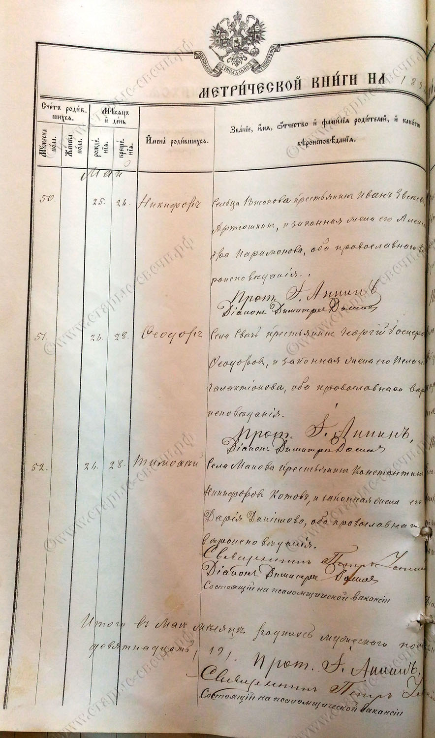 У мещанина Василия Степановича Низовского в 1877 году в Свечах родился сын