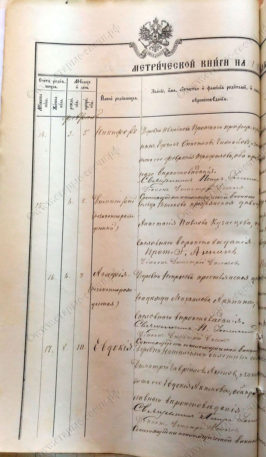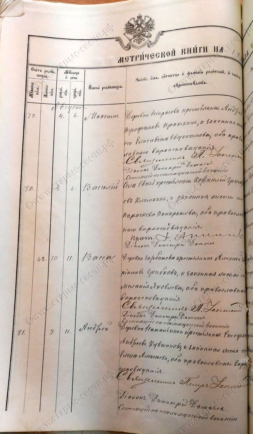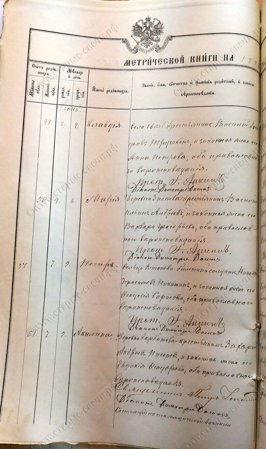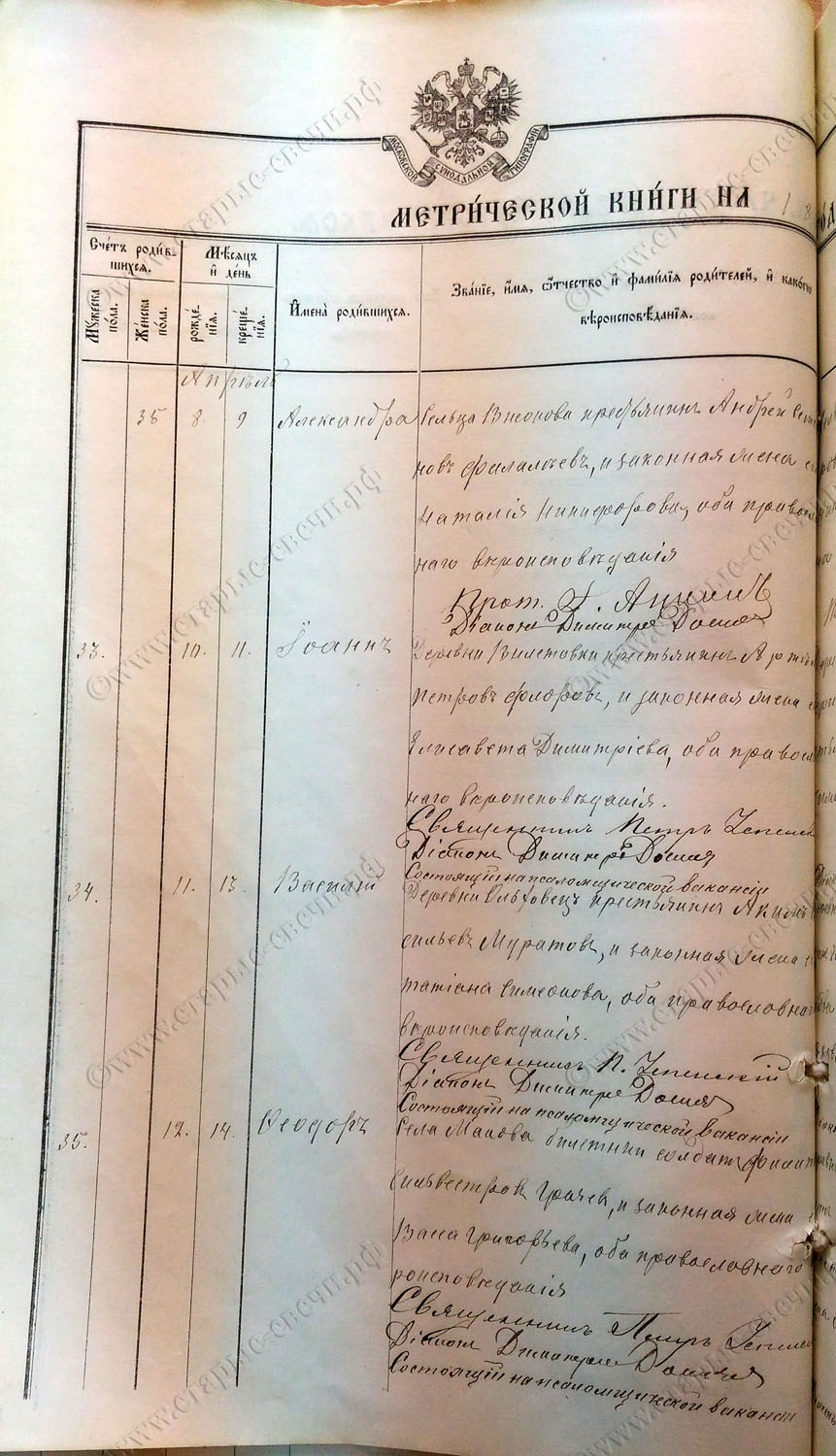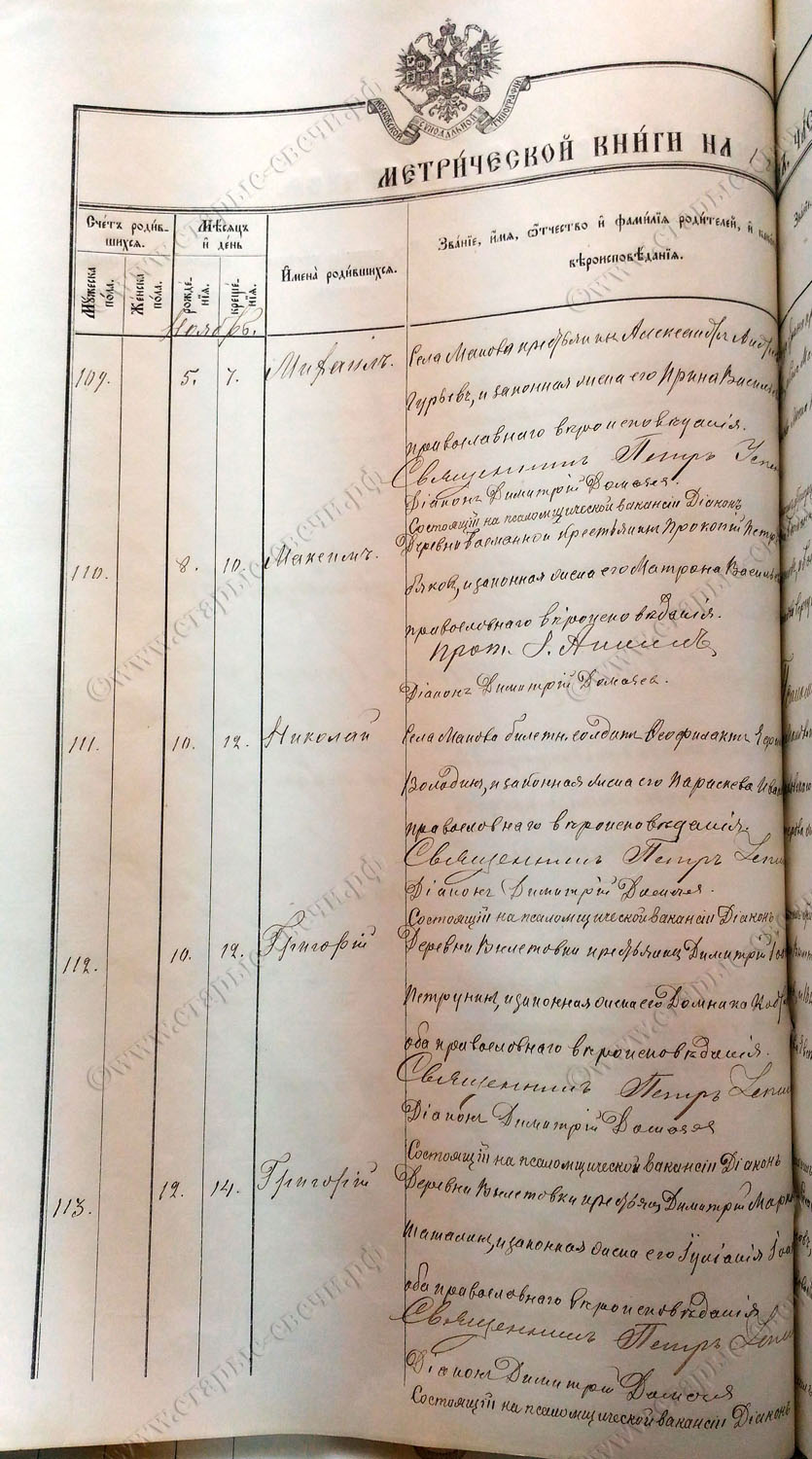 У мещанина Василия Степановича Низовского в 1877 году в Свечах родился сын