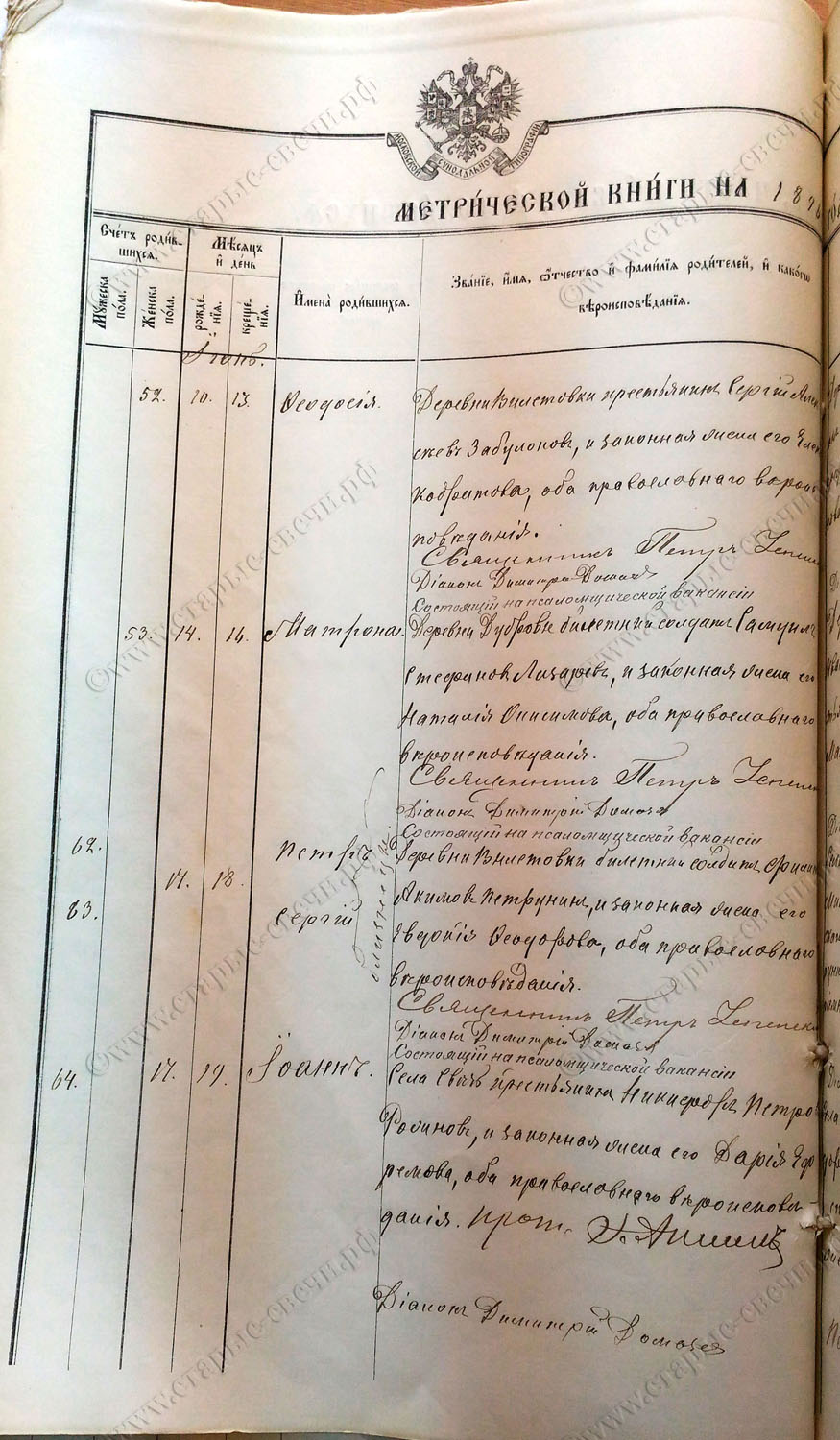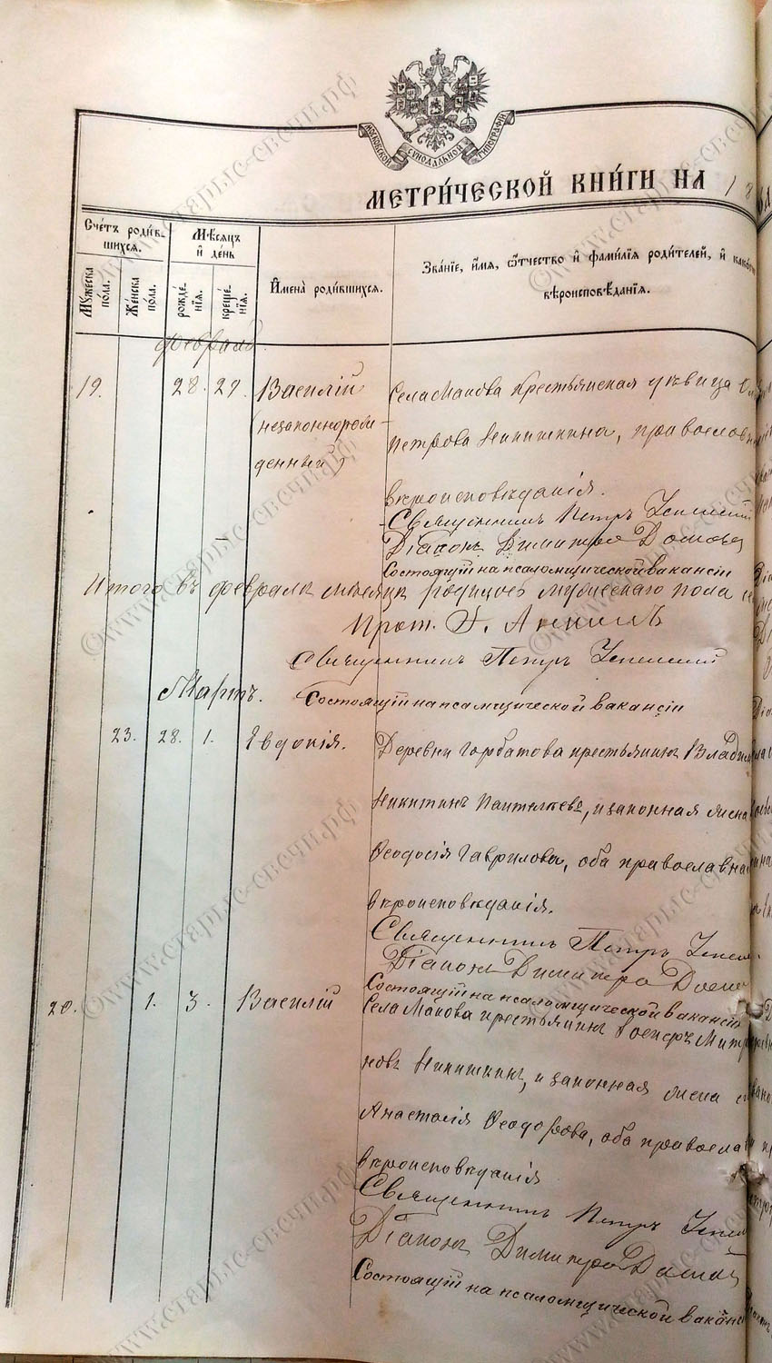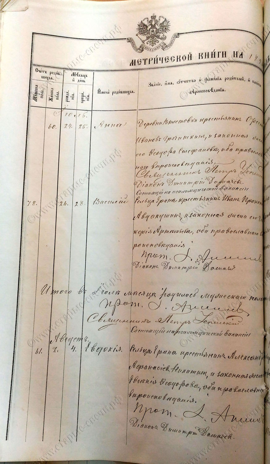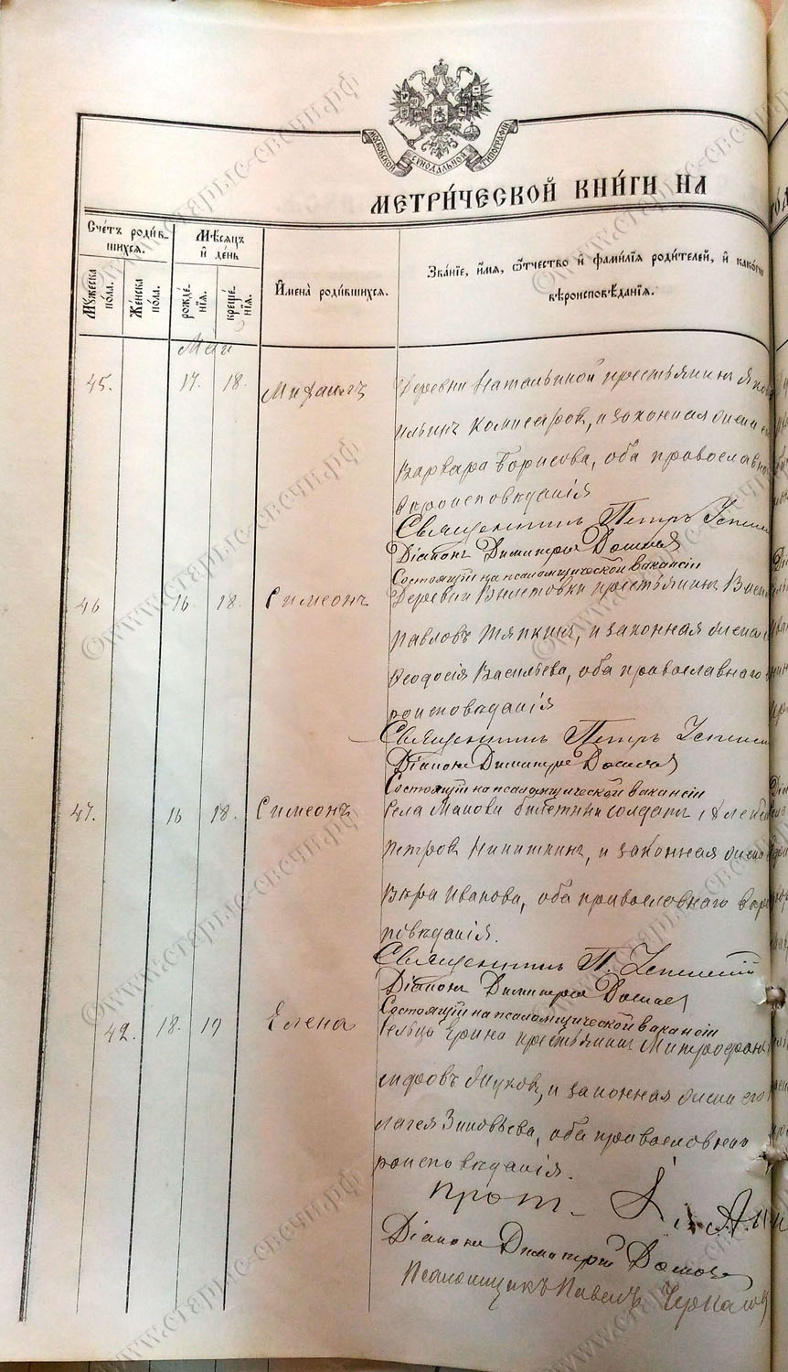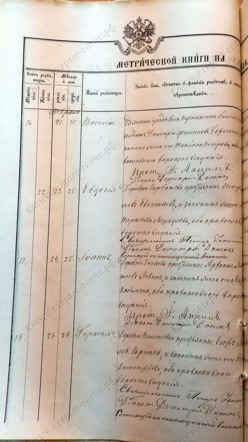 У мещанина Василия Степановича Низовского в 1877 году в Свечах родился сын