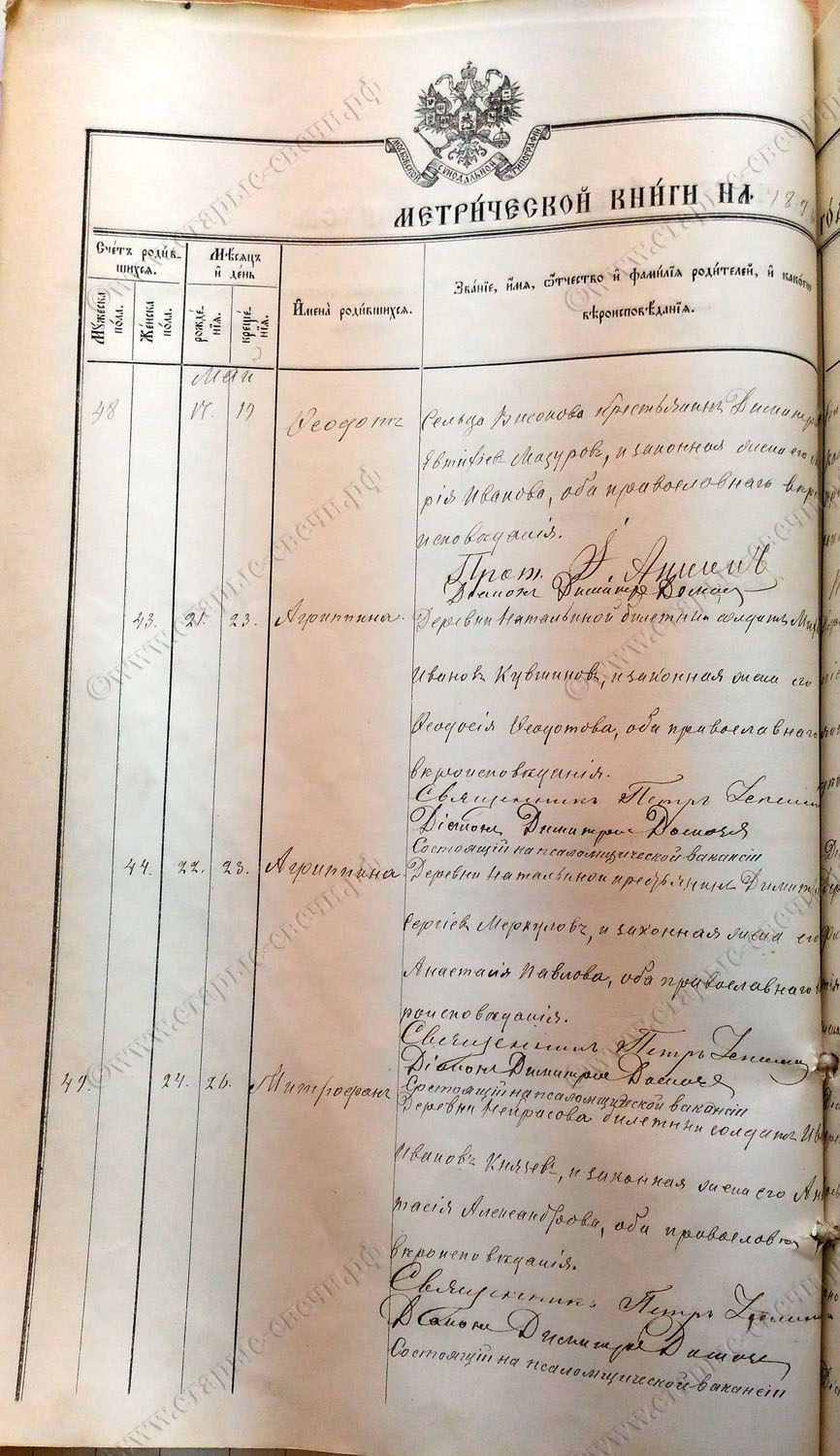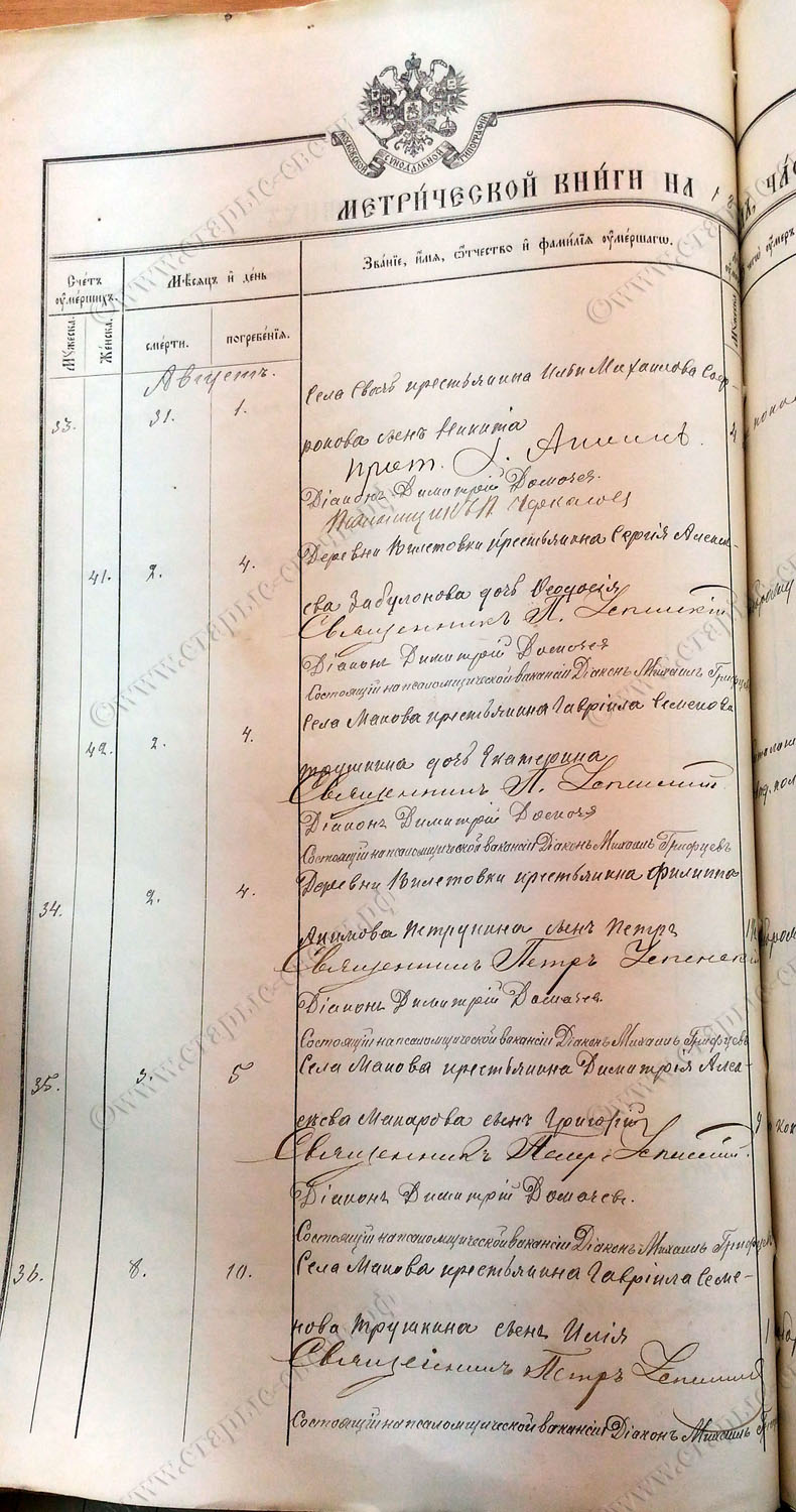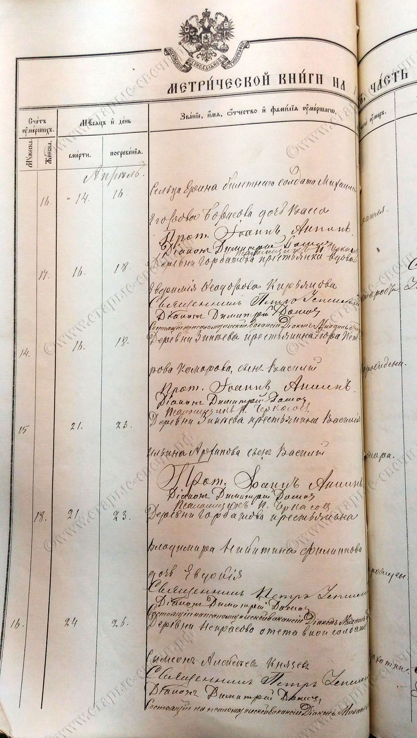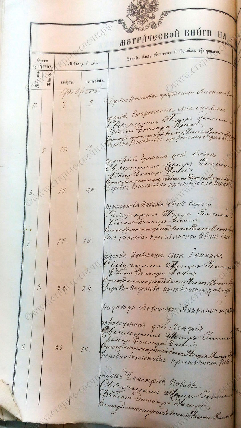 Из Метрической книги за 1896 год также усматривается, что в Свечах проживали