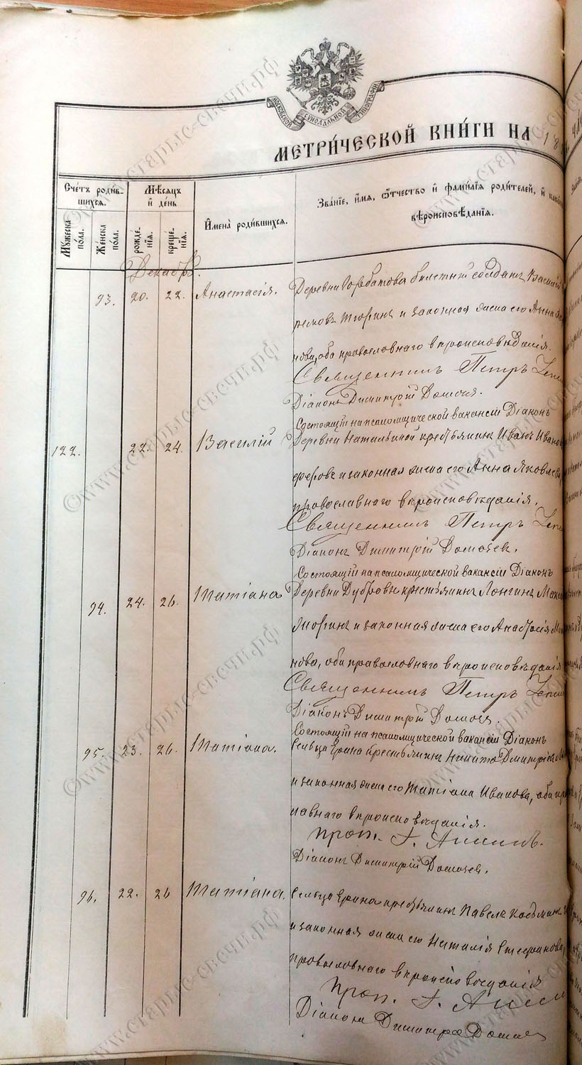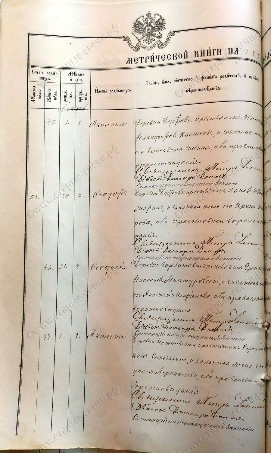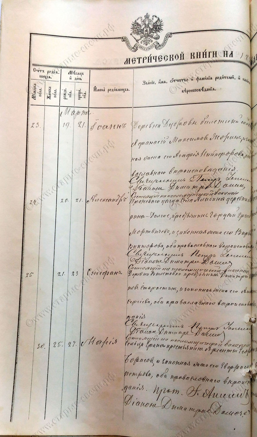 Из Метрической книги за 1896 год также усматривается, что в Свечах проживали