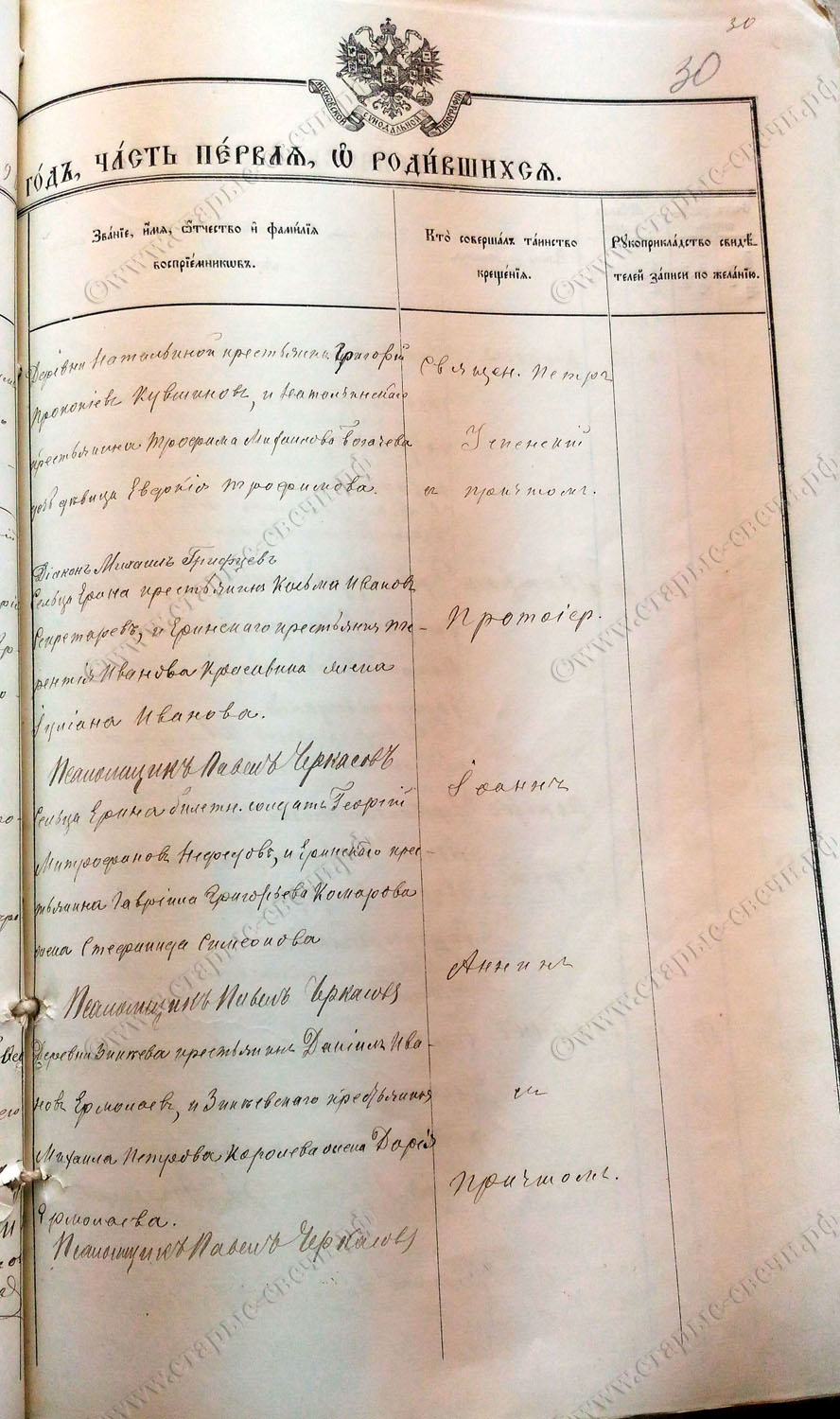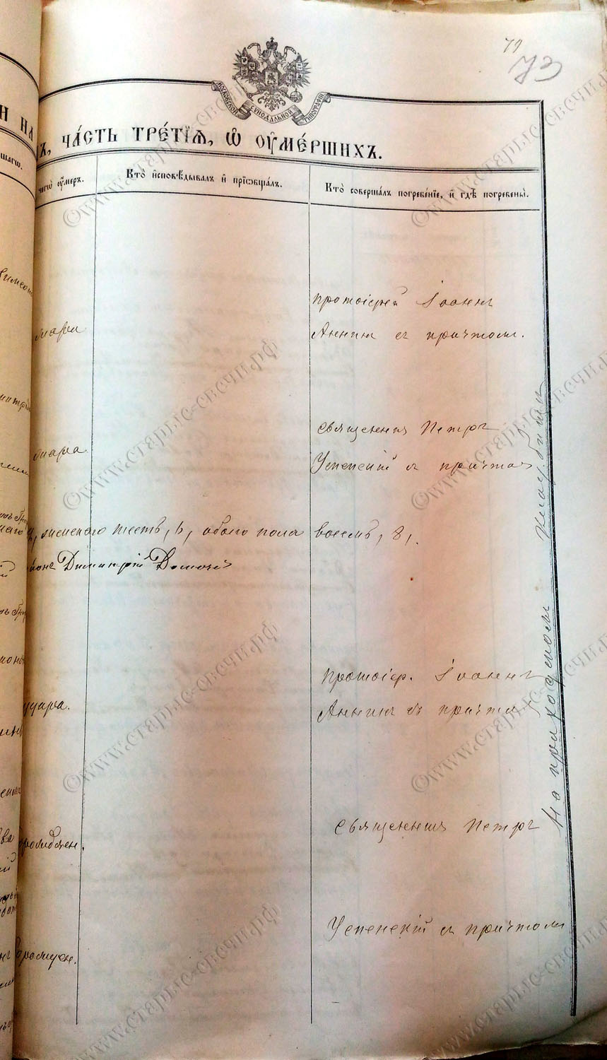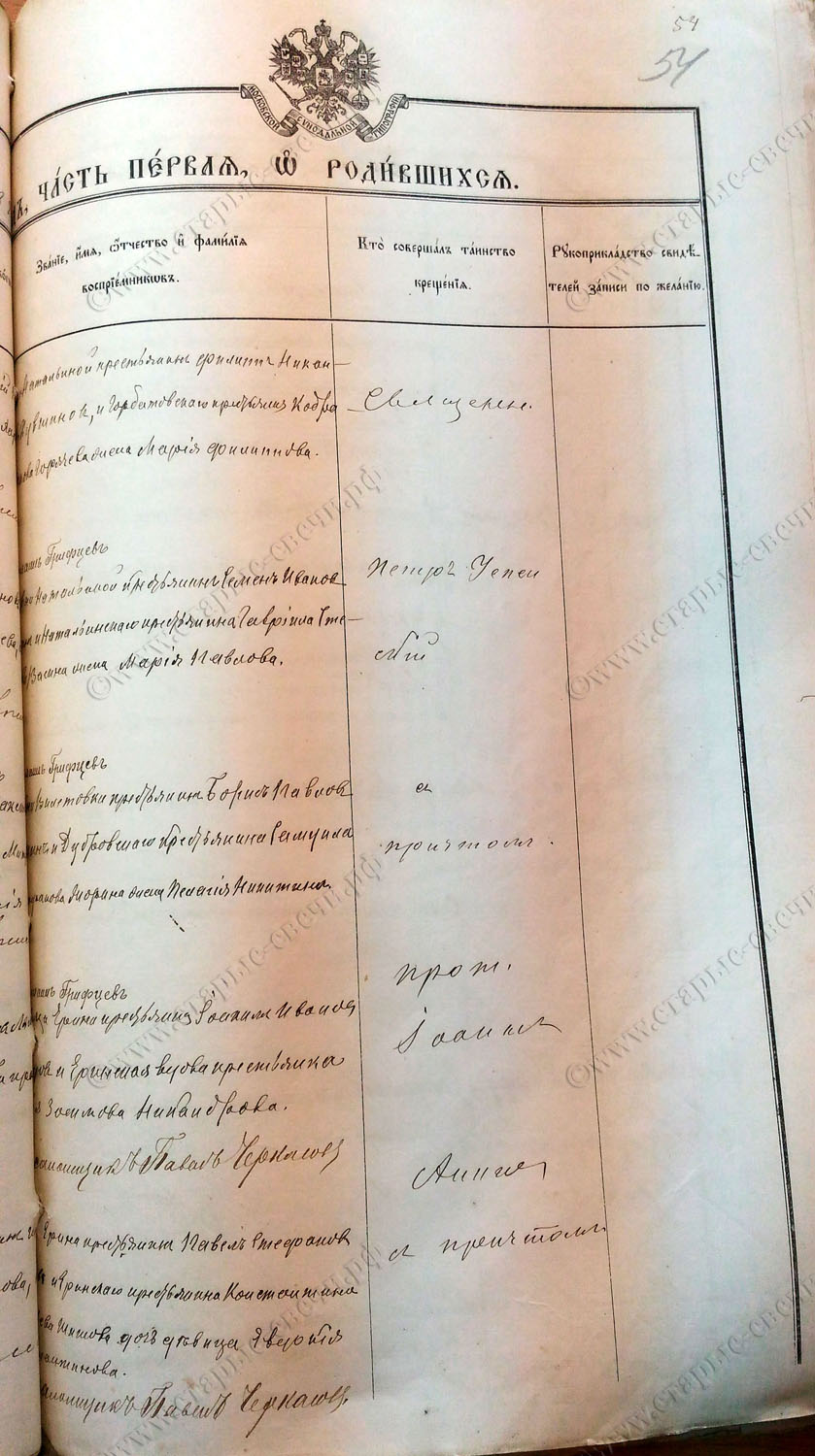 Кроме этого, при церкви в Свечах в это время были дьякон Дмитрий Домов и псаломщик Павел Черкасов (1896 г.).