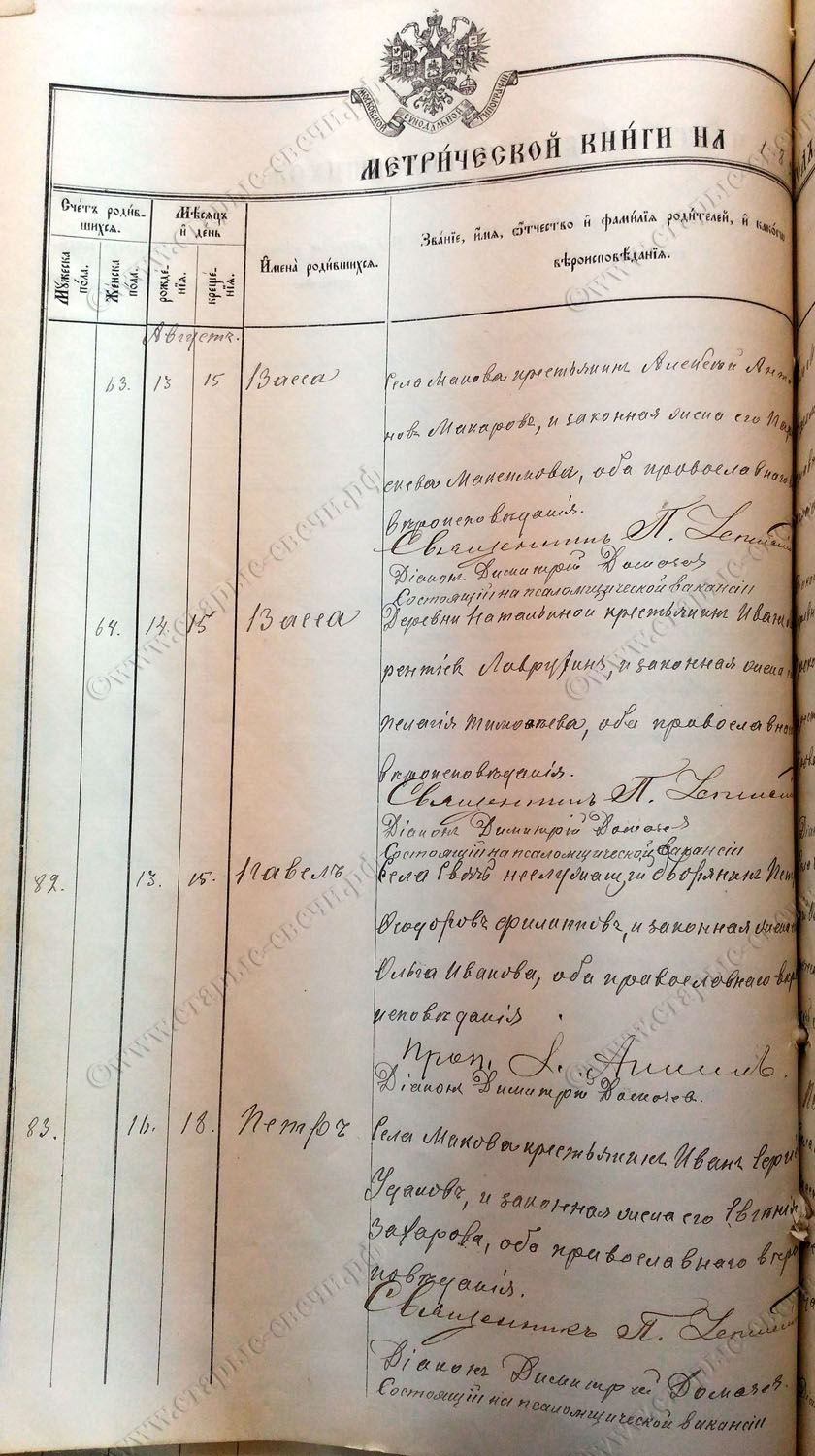 А 13 августа 1896 г. у Петра Фёдоровича Филиппова и его жены Ольги Ивановны родился сын