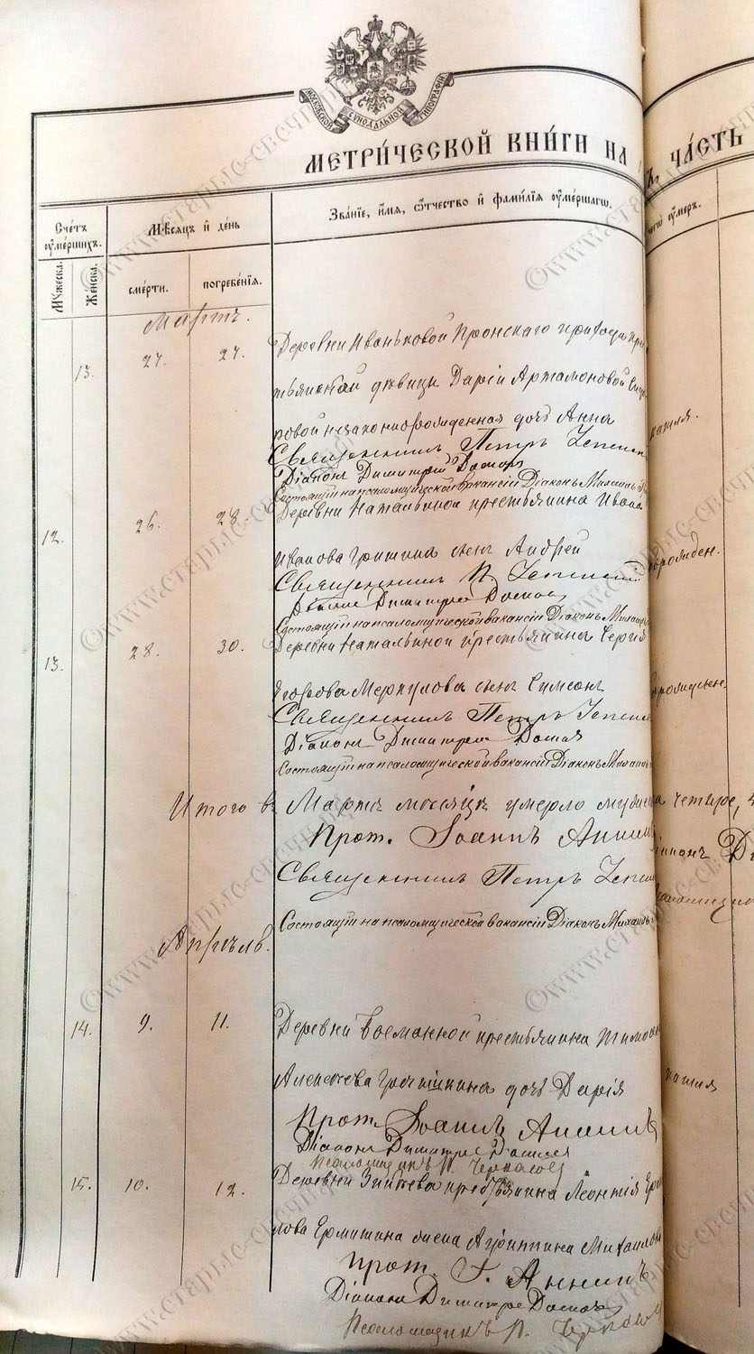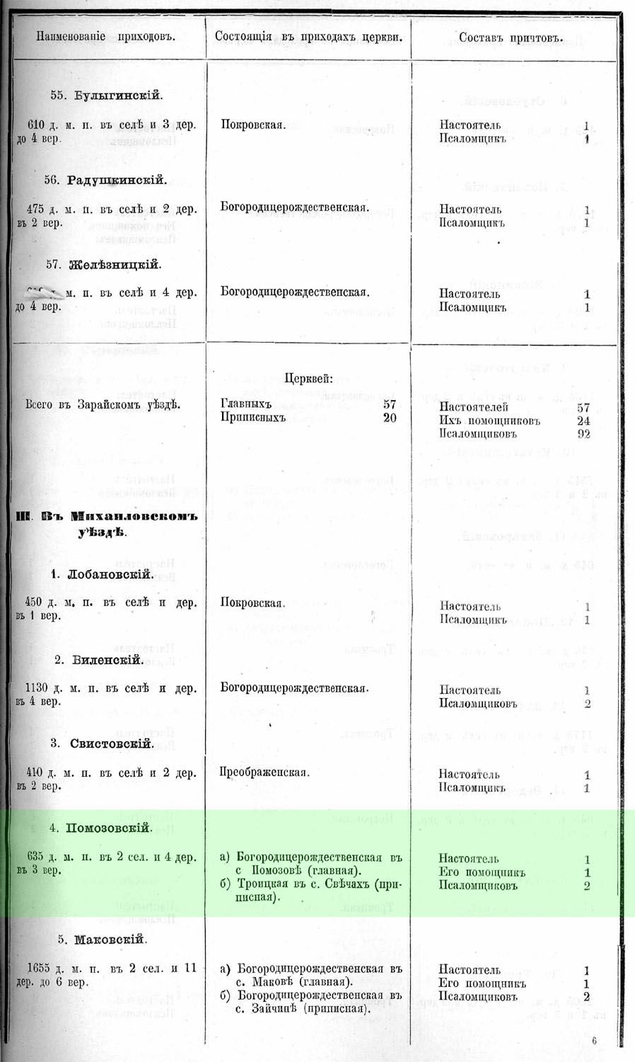 и сверхштатный причетник дьячок Михаил Никольский (1877 г.). Последнего в 1878 году переместили на штатную псаломщическую вакансию в село Матвеевка Пронского уезда.