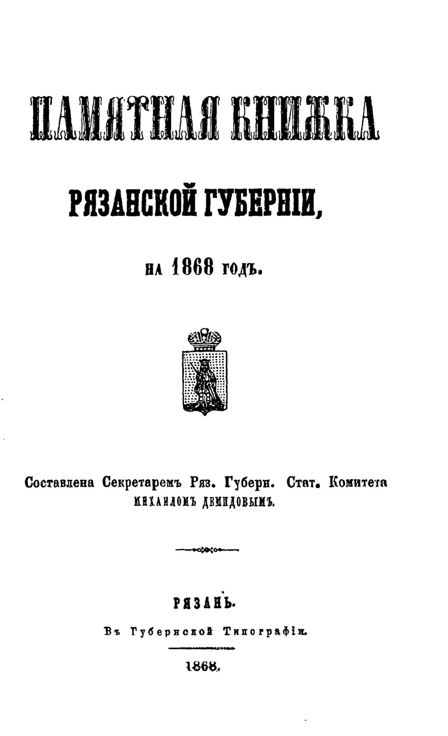 С середины XIX по начало XX вв. издавались «Памятные книжки Рязанской губернии» – ежегодники справочной информации, выпускавшиеся местными официальными лицами и органами внутренних дел.