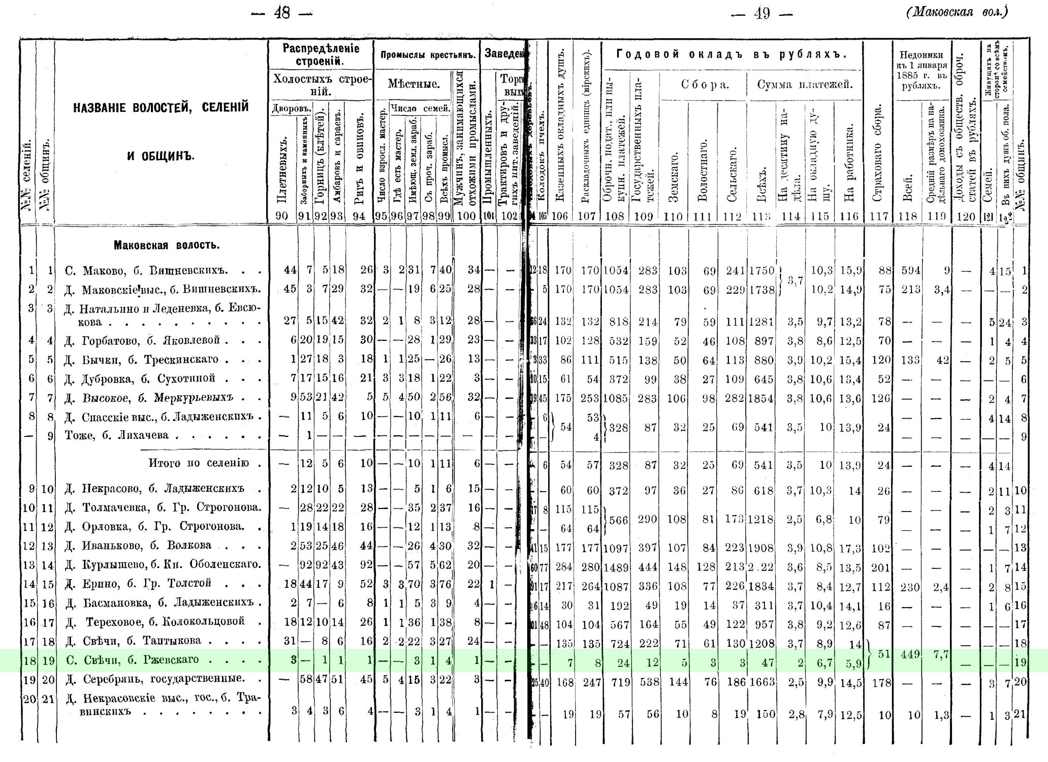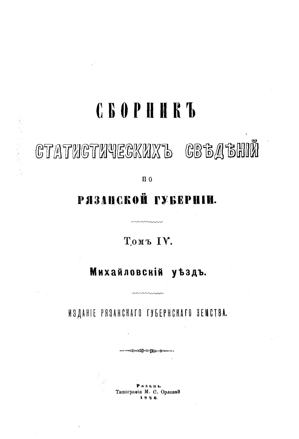В 1886 году вышел Сборник статистических сведений по Рязанской губернии с описанием селений и общин и статистическими таблицами об их экономическом положении по состоянию на 1885 год.