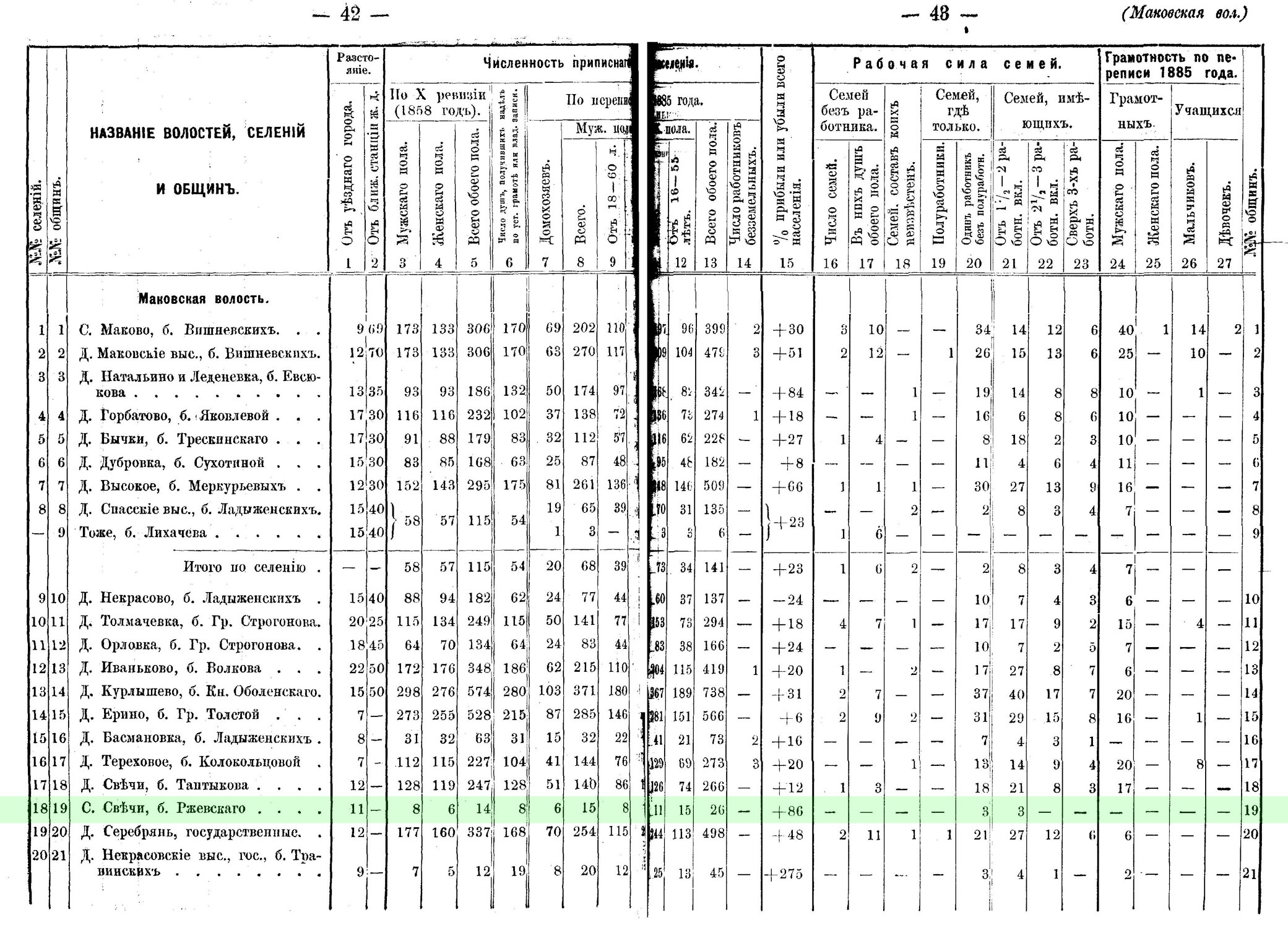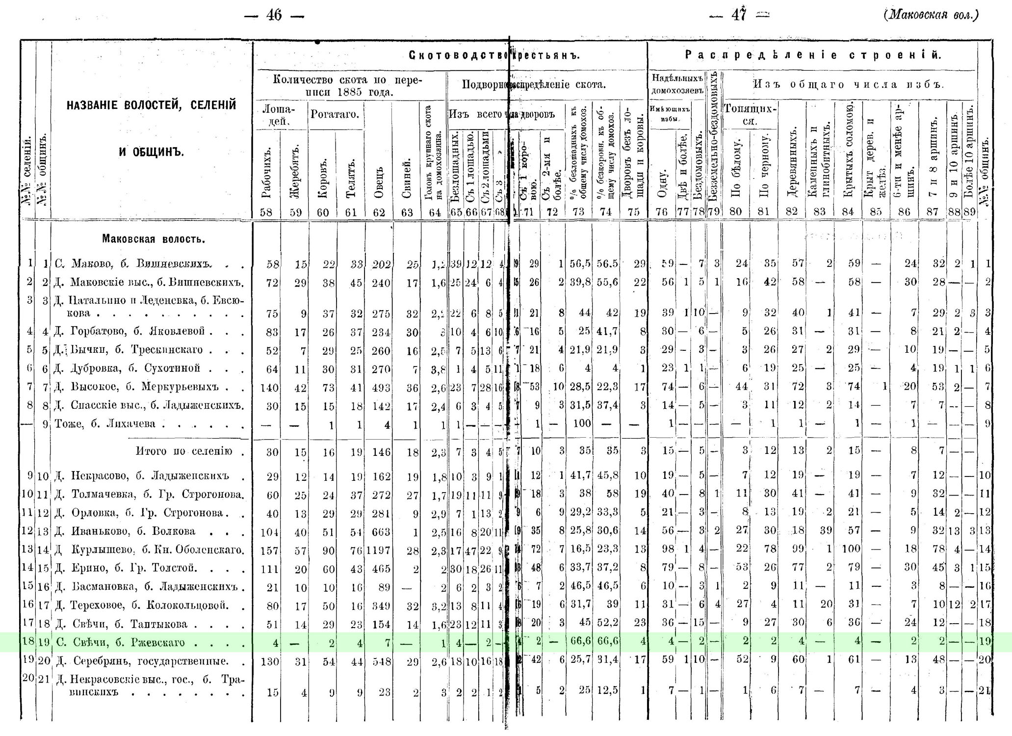 Точнее, это крестьяне одного из помещиков – П. Н. Ржавского (в Сборнике ошибка: фамилию помещика следует читать не «Ржевский», а «Ржавский») – на момент накануне отмены крепостного права, когда в Свечах также проживали ещё и