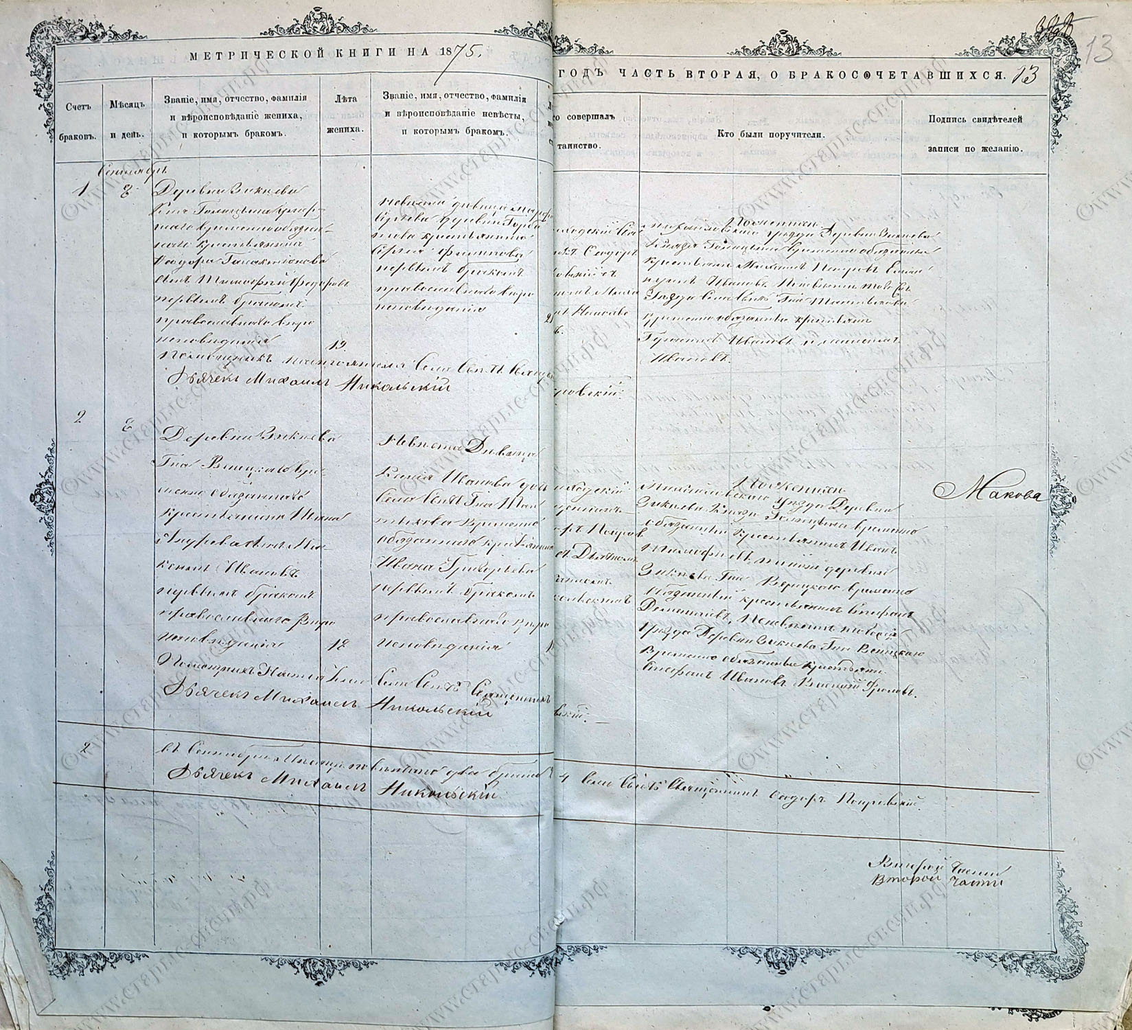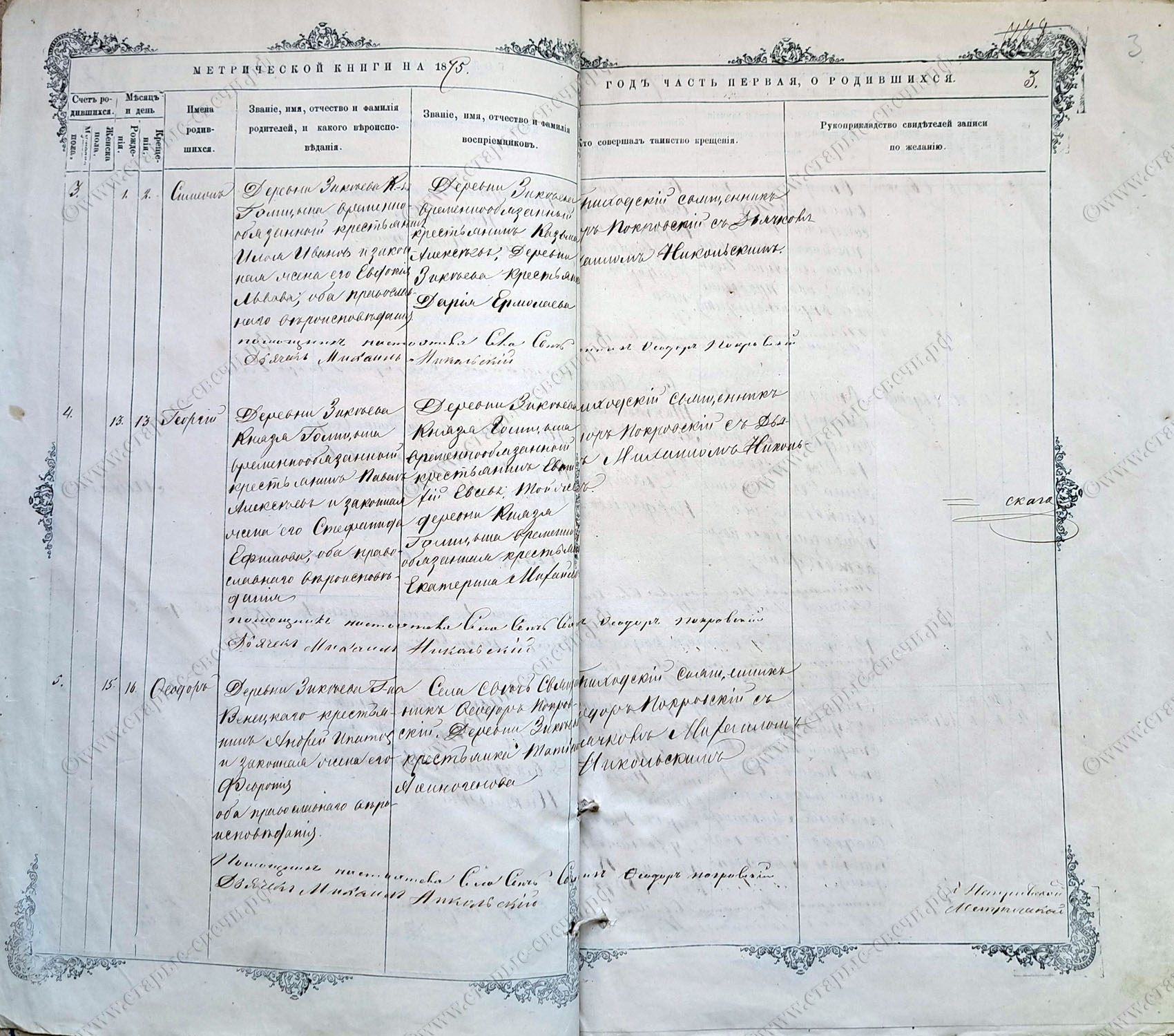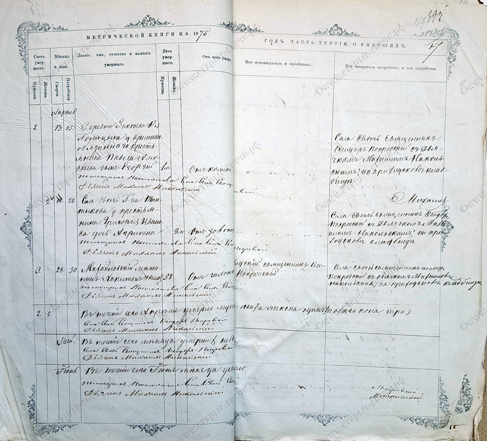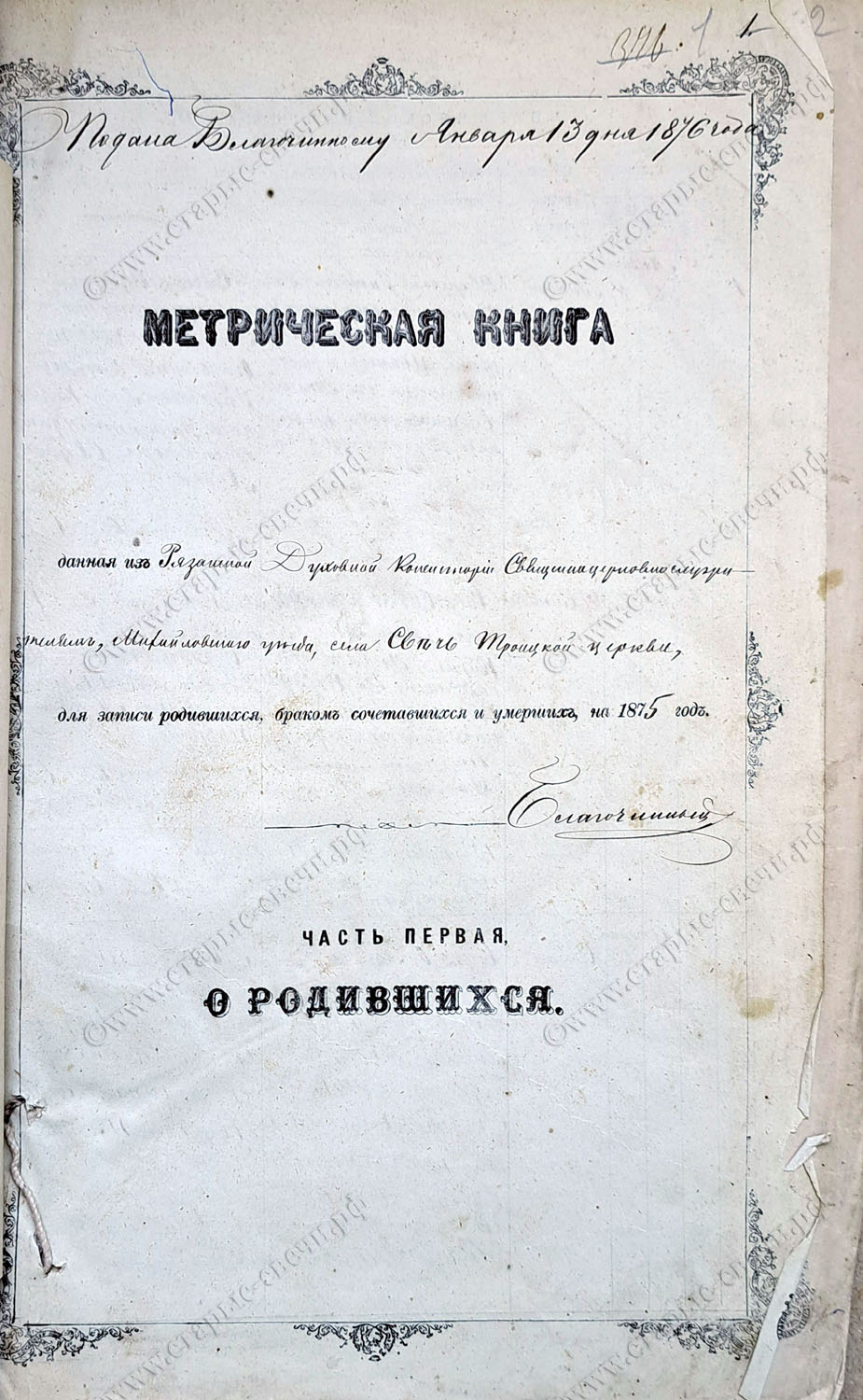 Метрическая книга за 1875 г.
