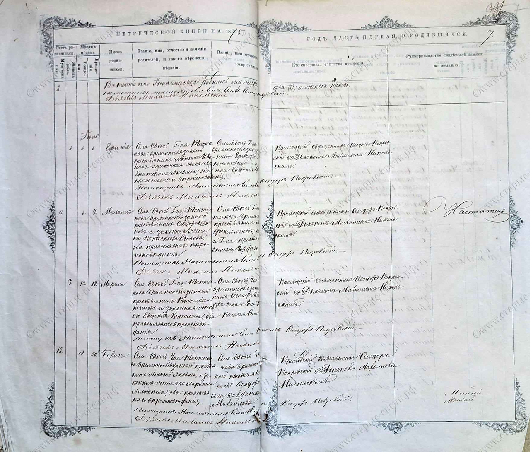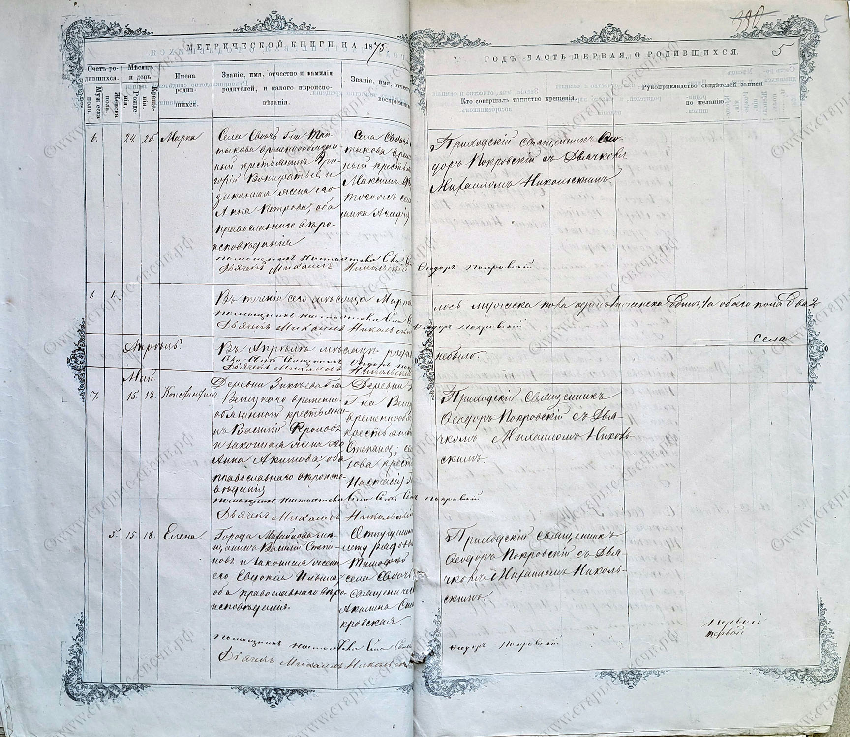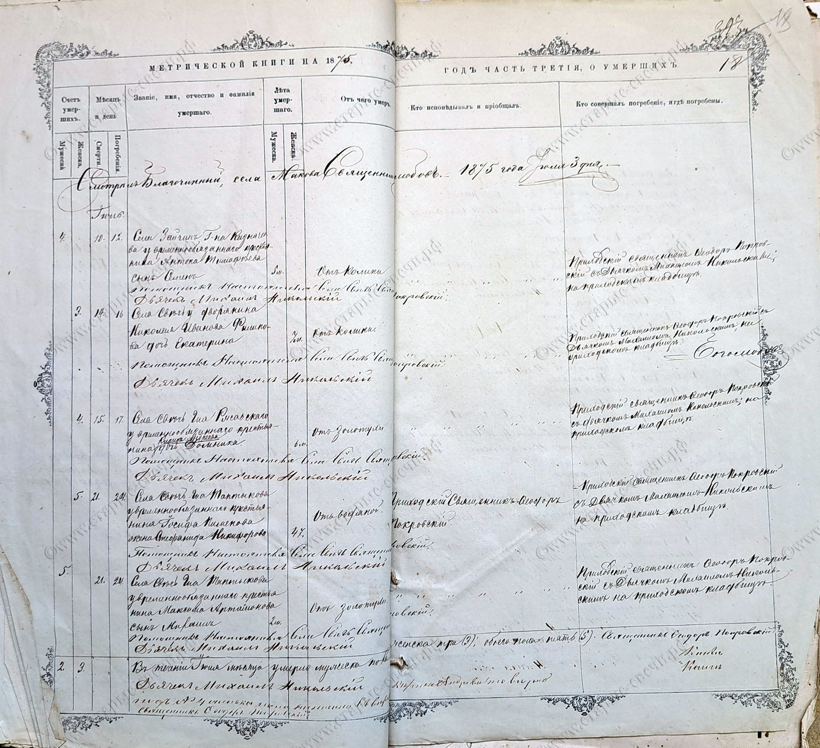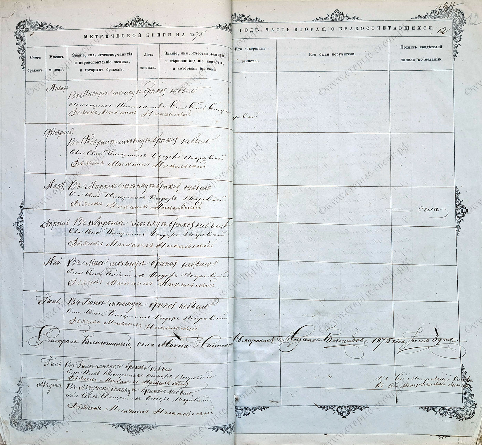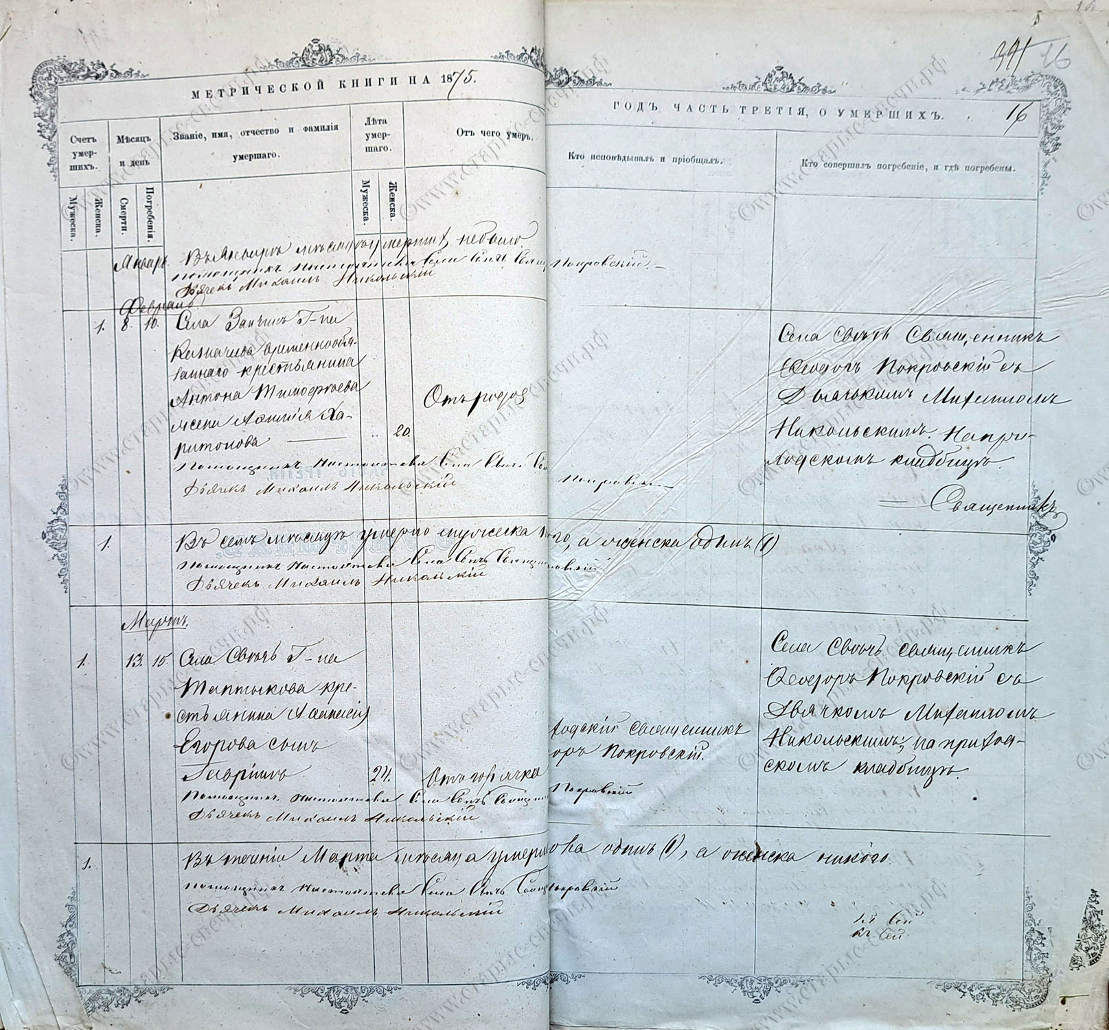 Метрическая книга за 1875 г.