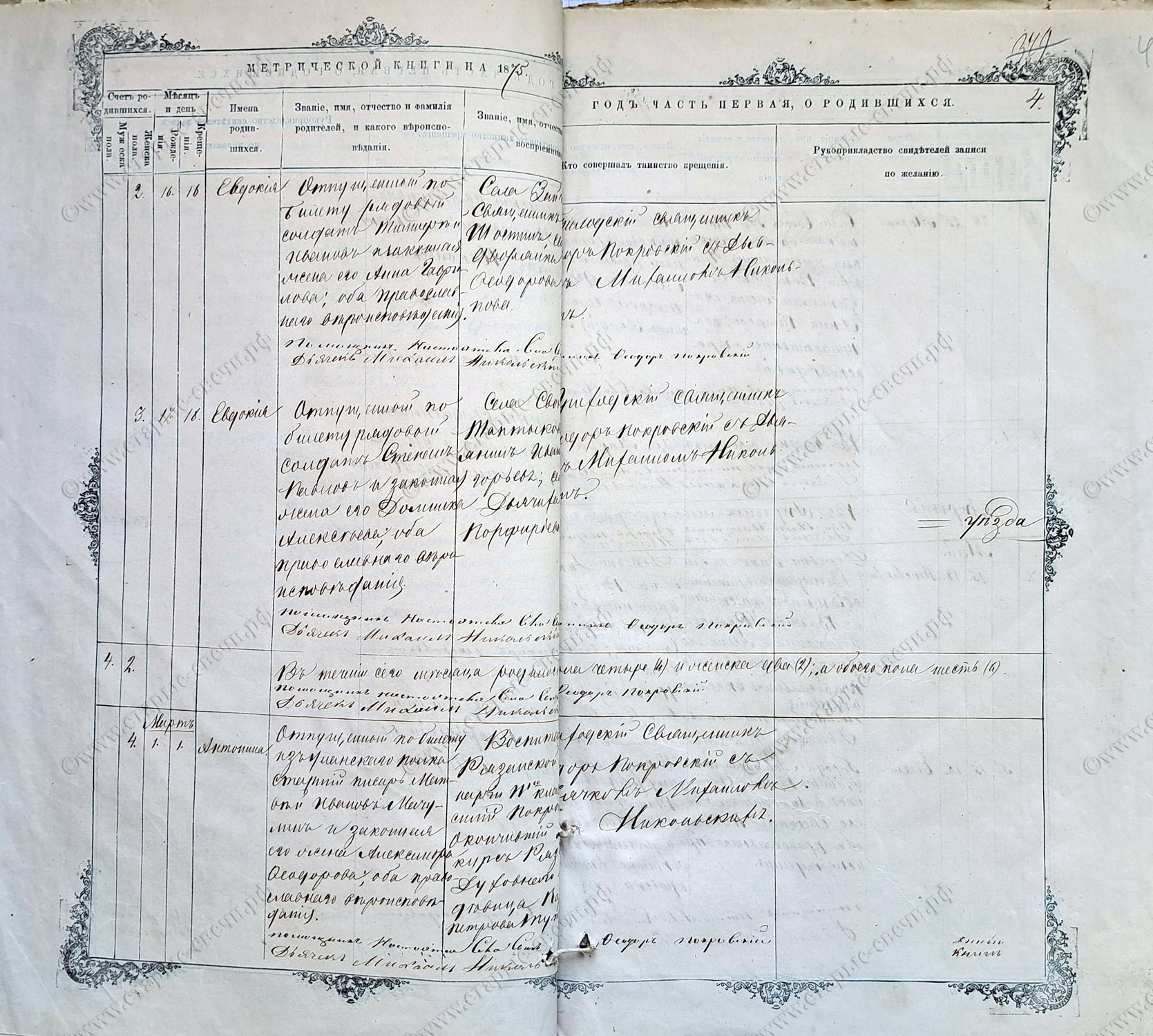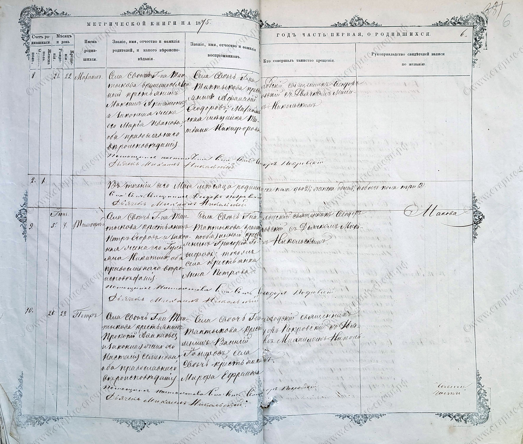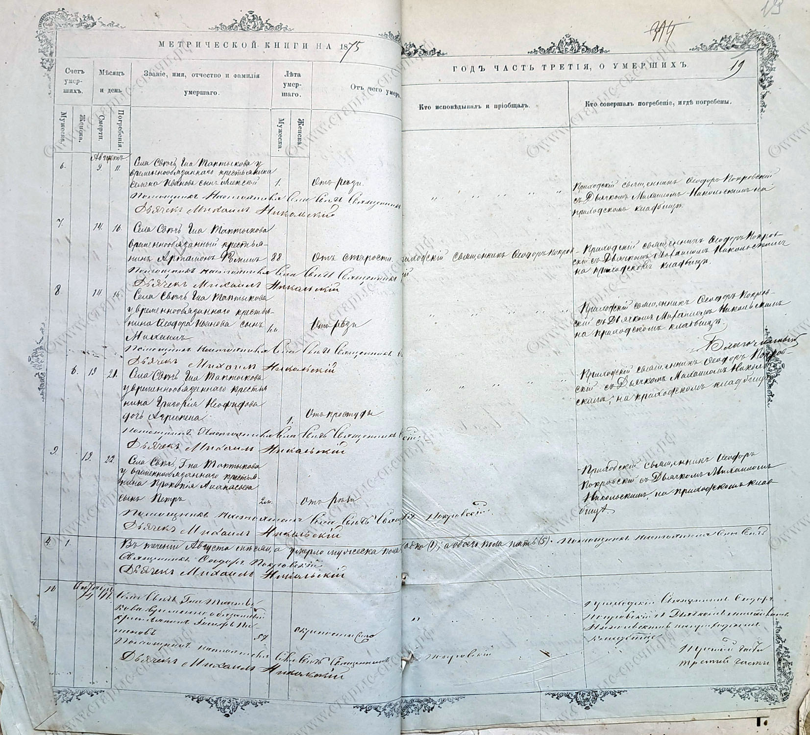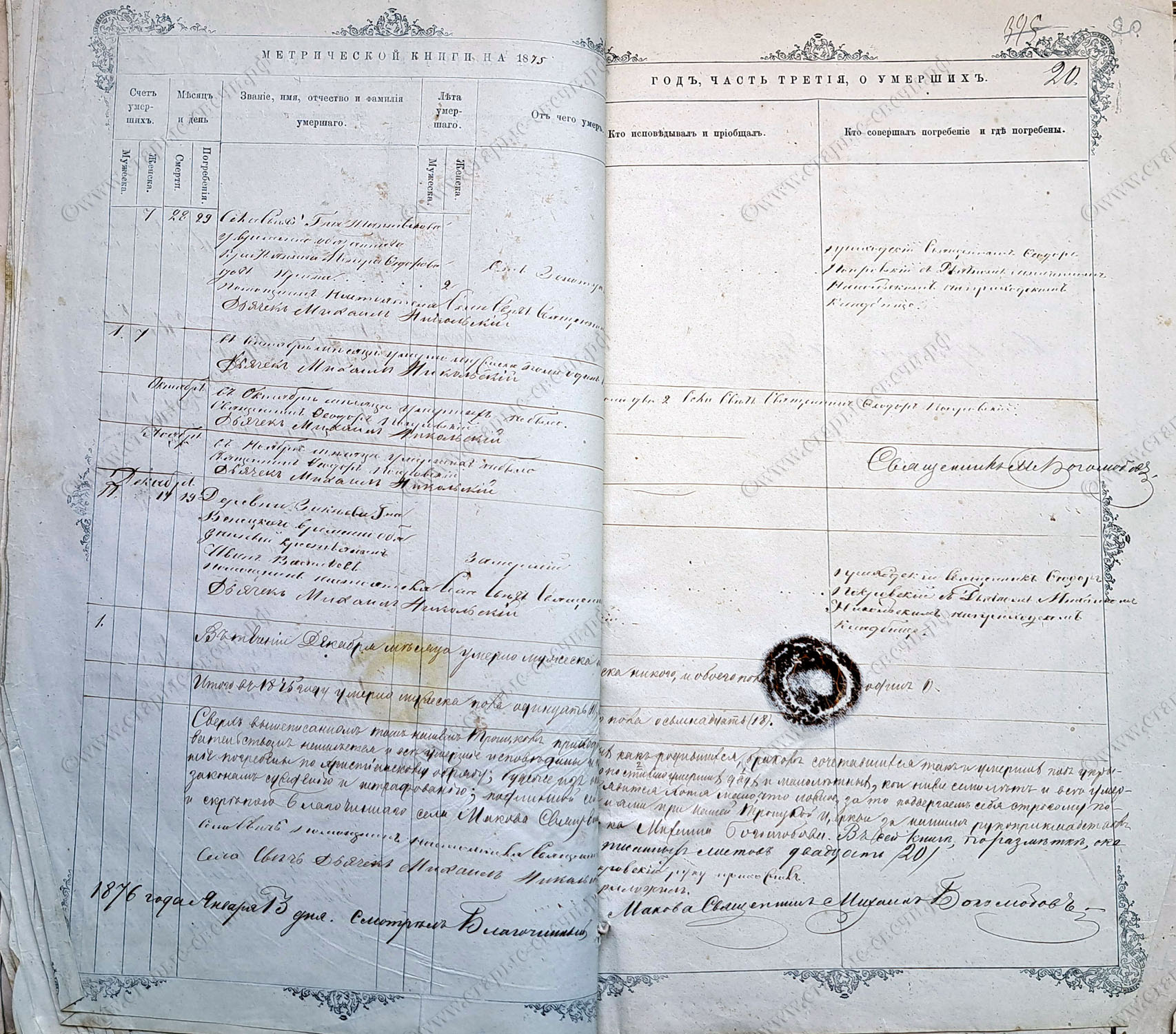 Метрическая книга за 1875 г.