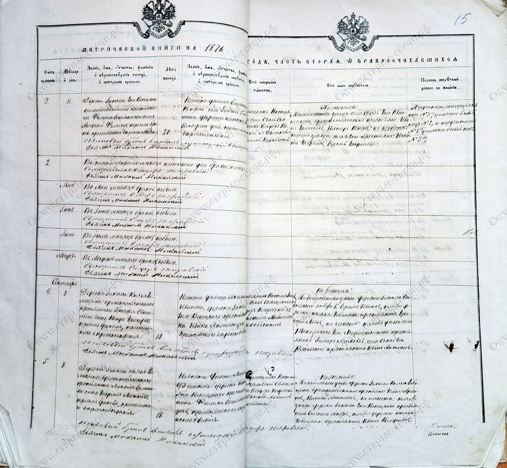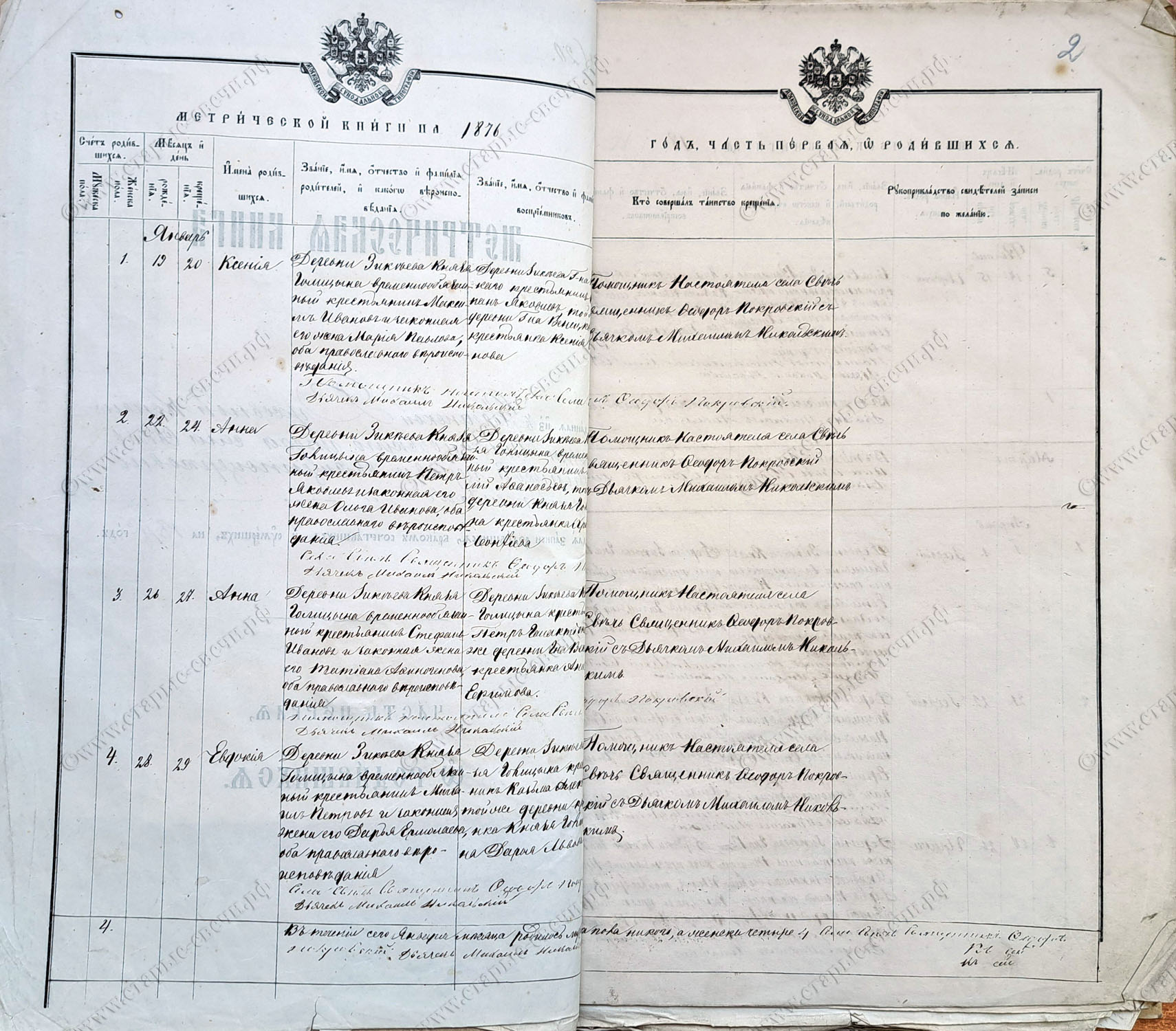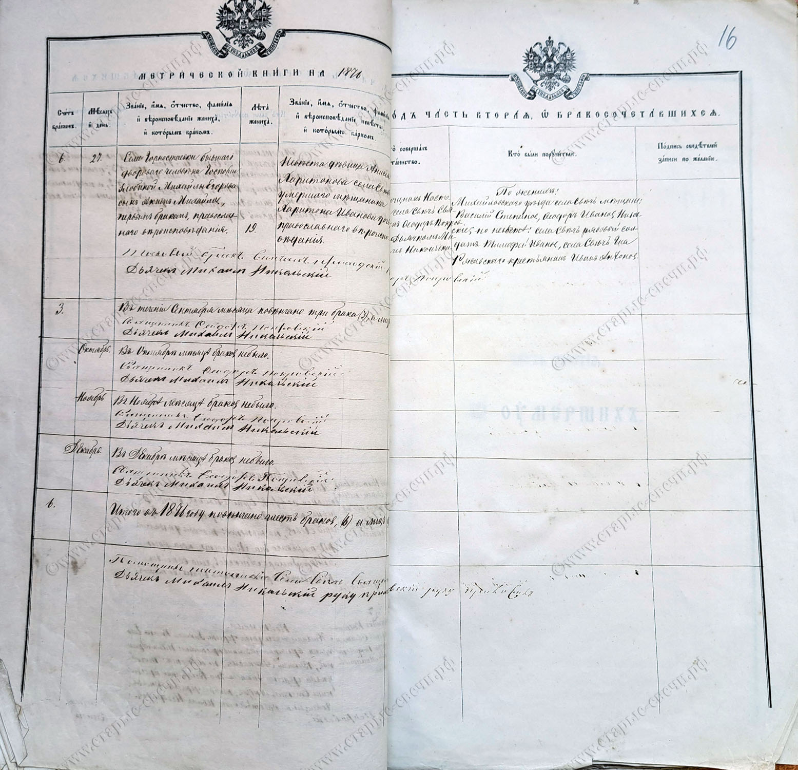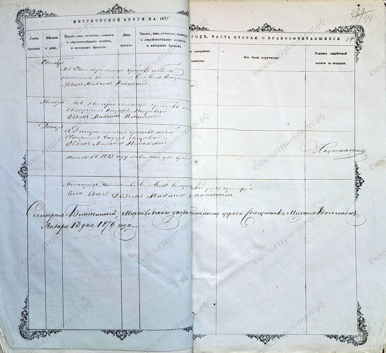 Метрическая книга за 1876 г.