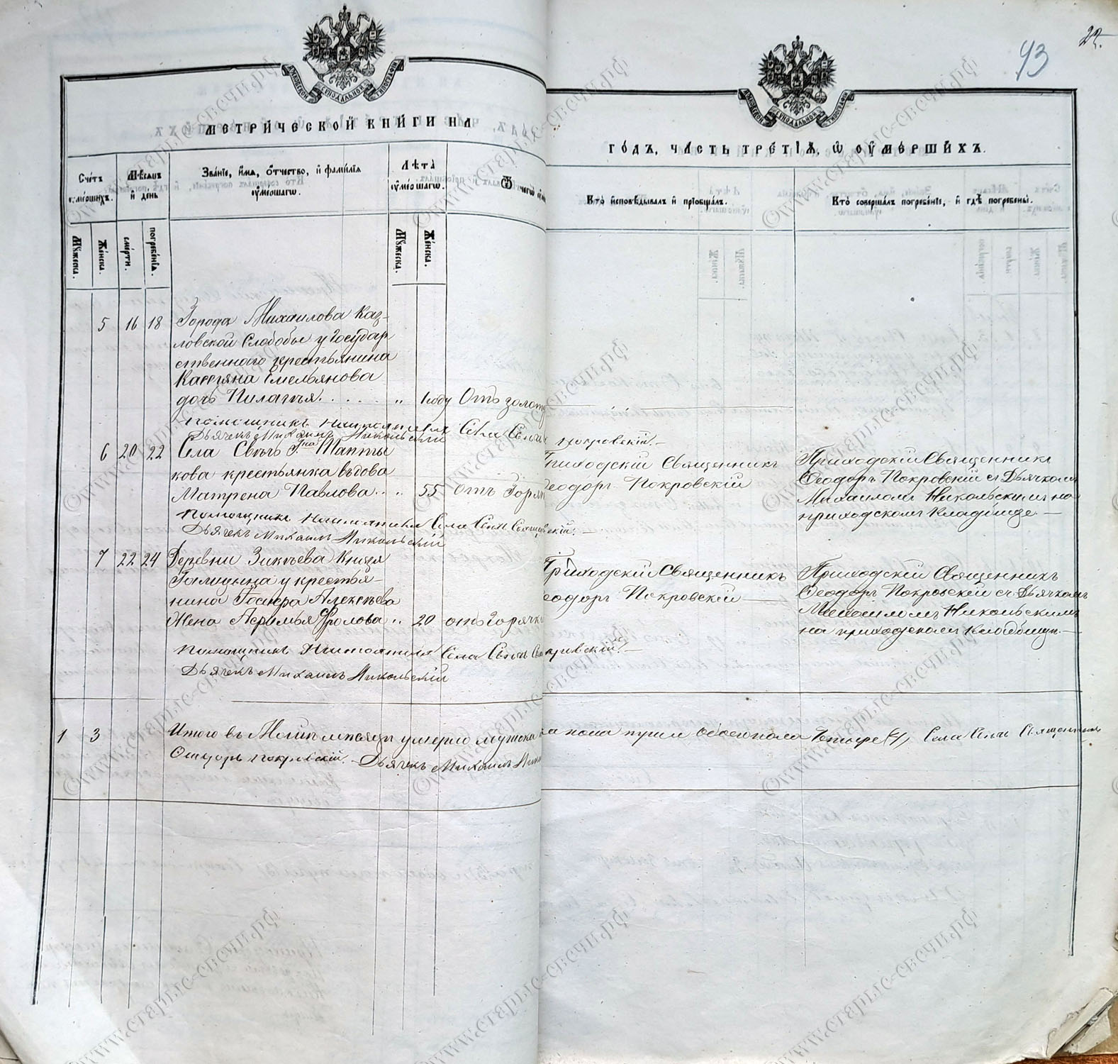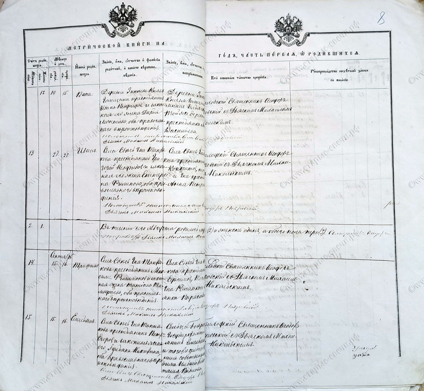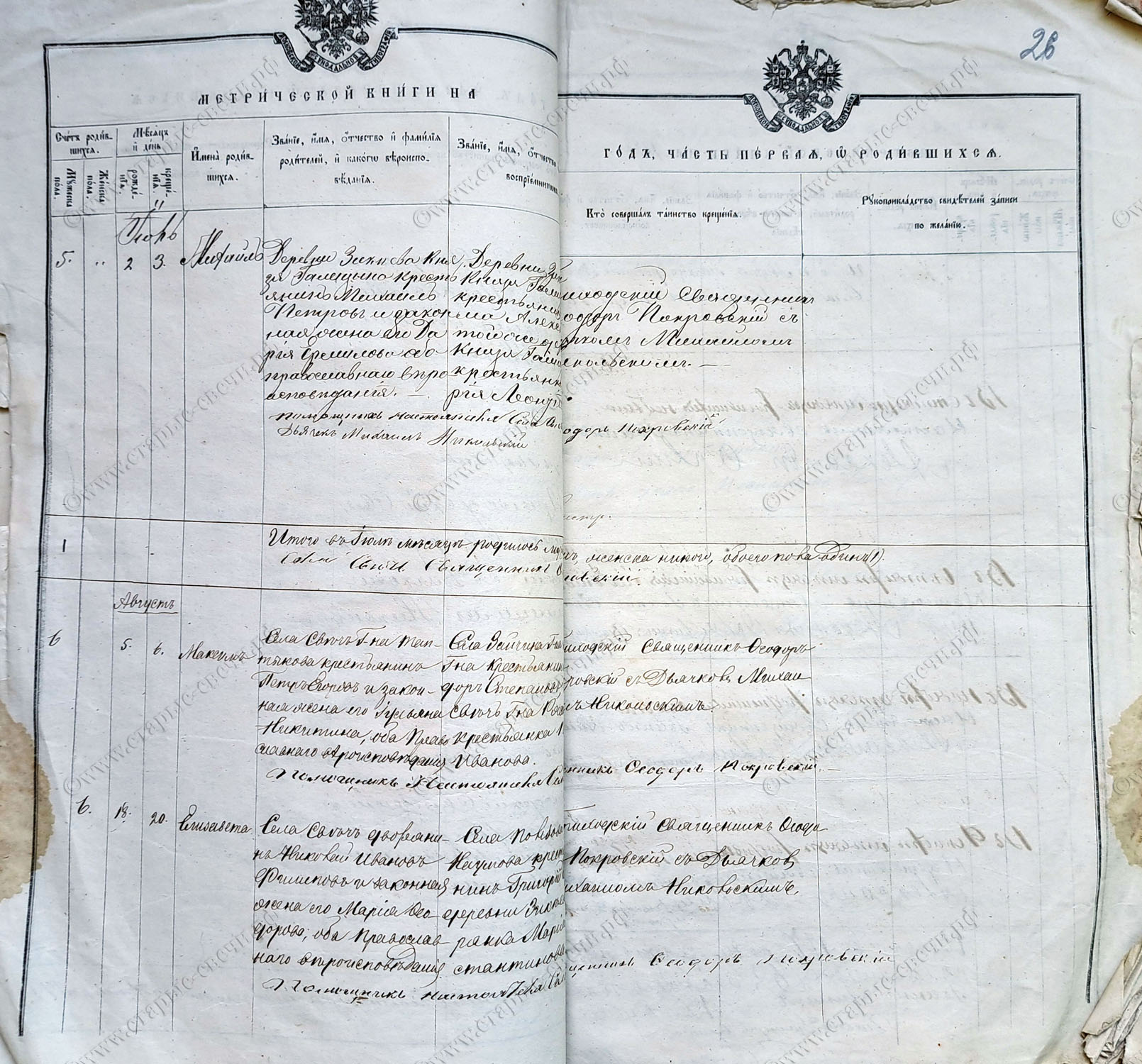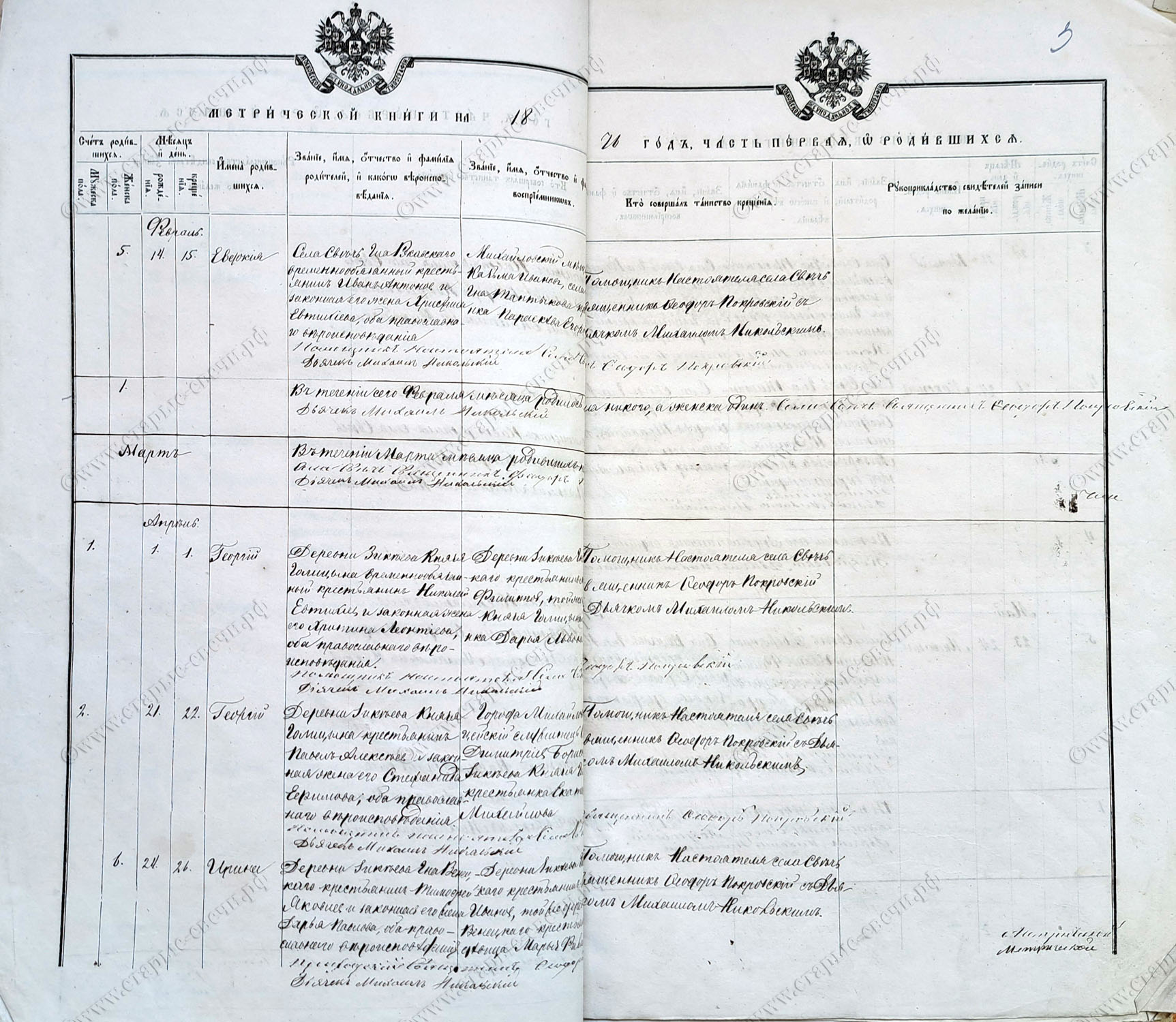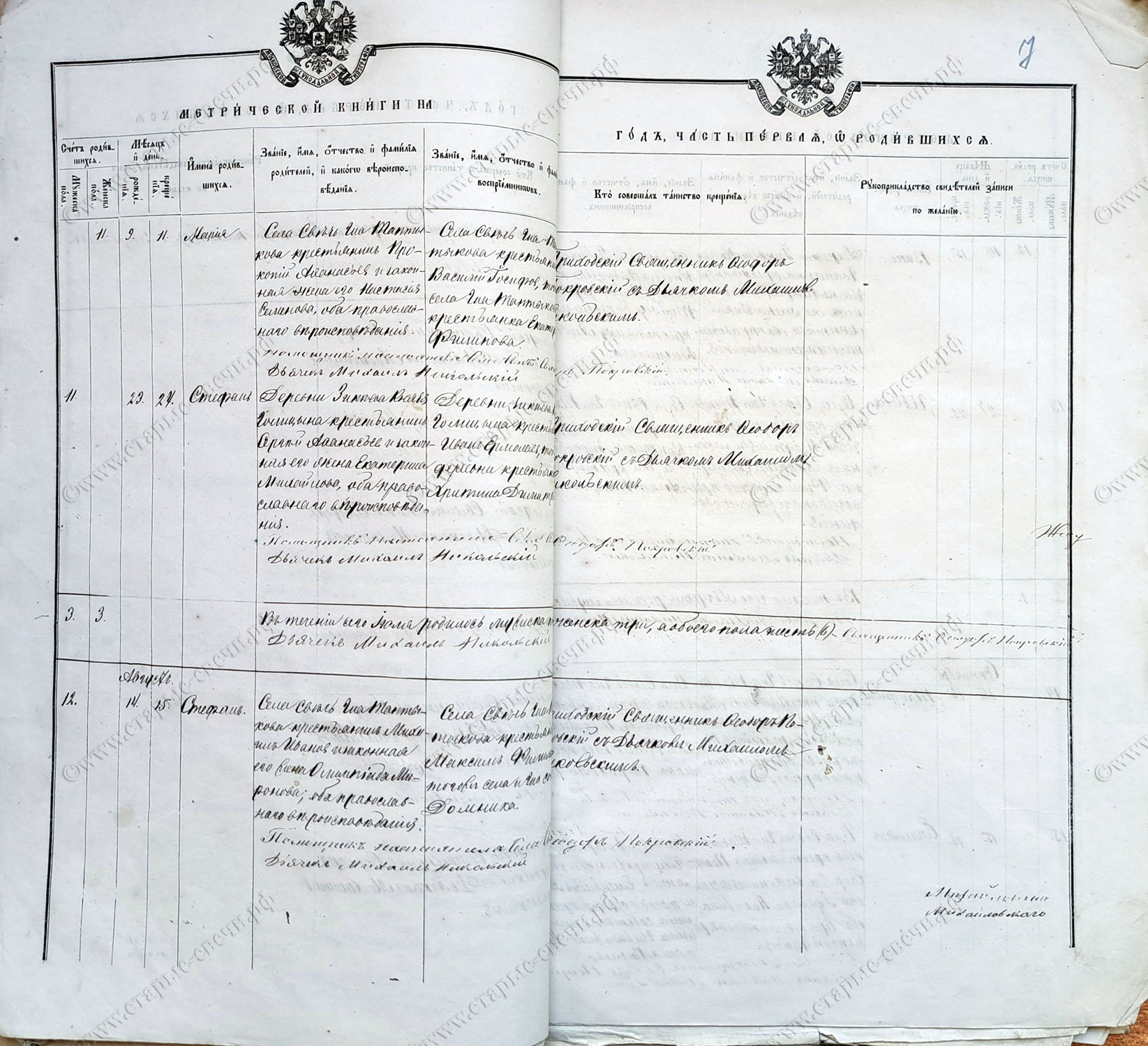 Михайловского уезда села Свечи.