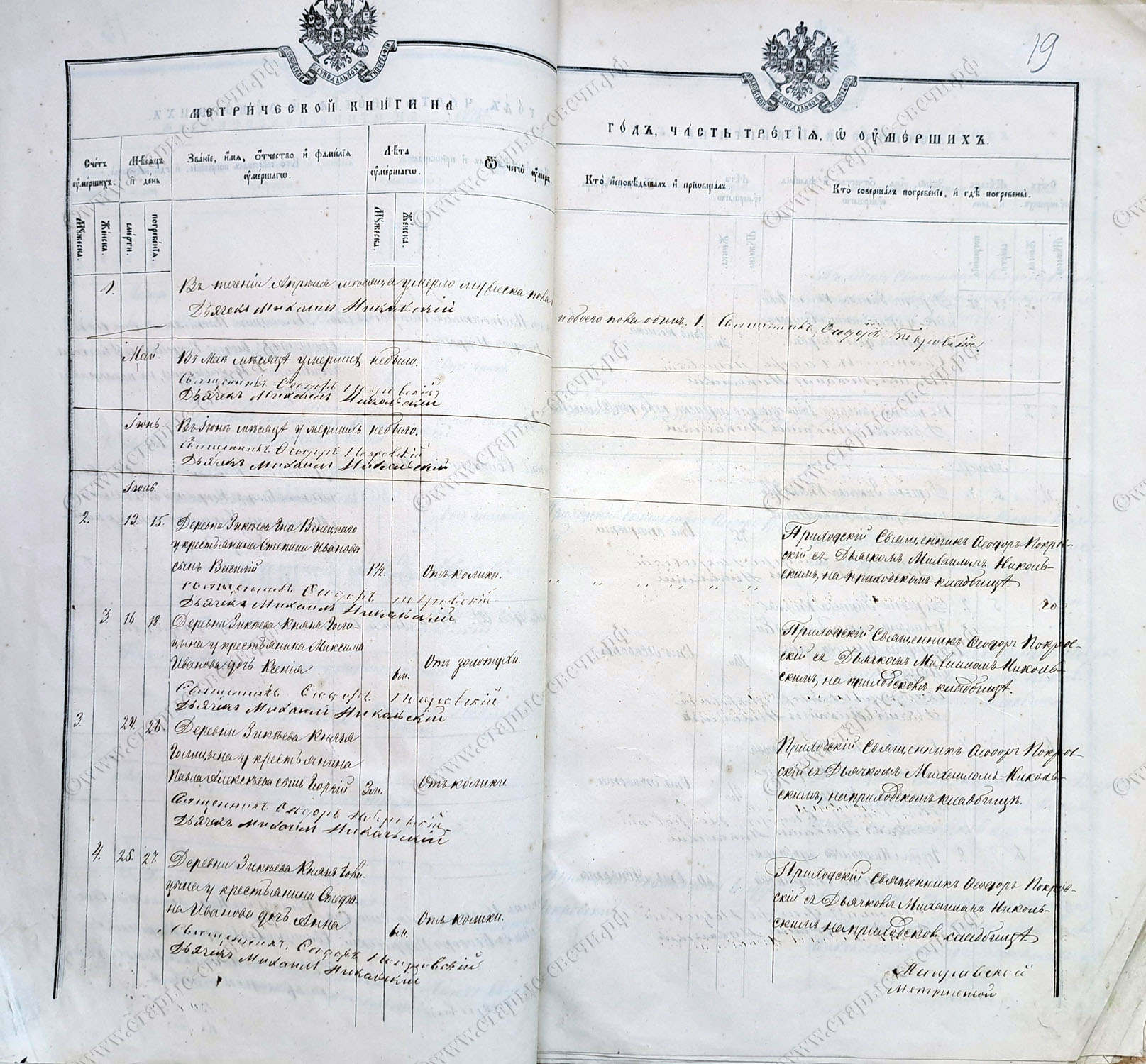 и сверхштатный причетник дьячок Михаил Данилович Никольский (1876, 1877 г.). Последнего в 1878 году переместили на штатную псаломщическую вакансию в село Матвеевка Пронского уезда.