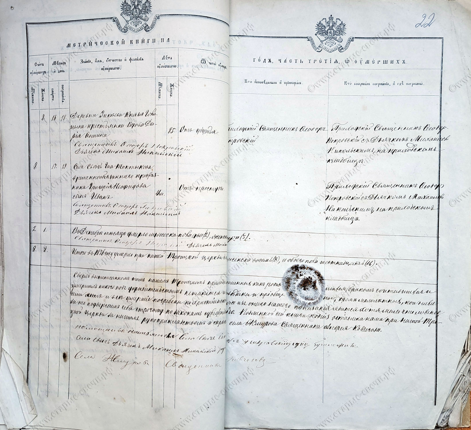 Самого священника Фёдора Покровского в 1878 году переместили в село Зайчино. Он умер в 1886 году.