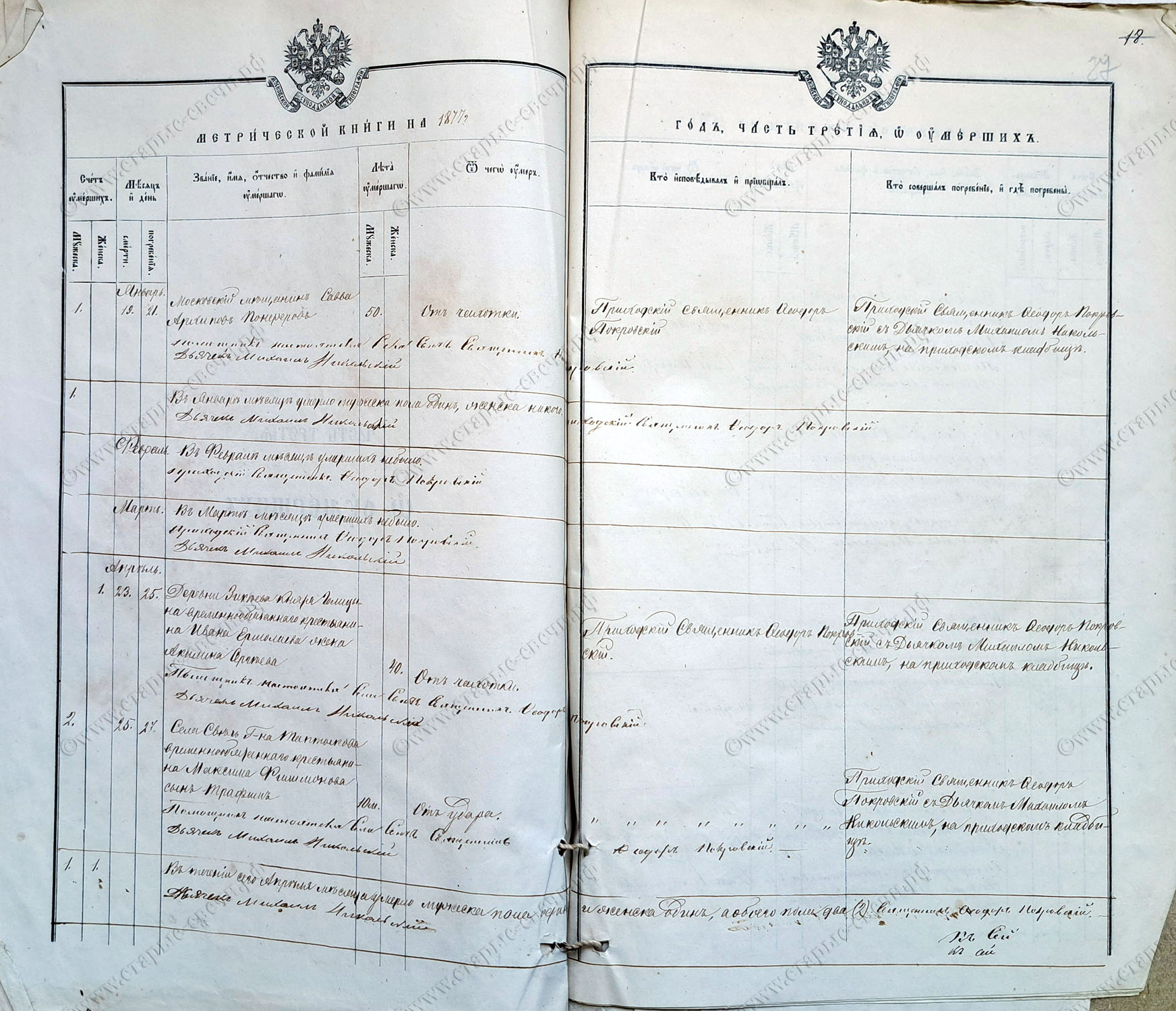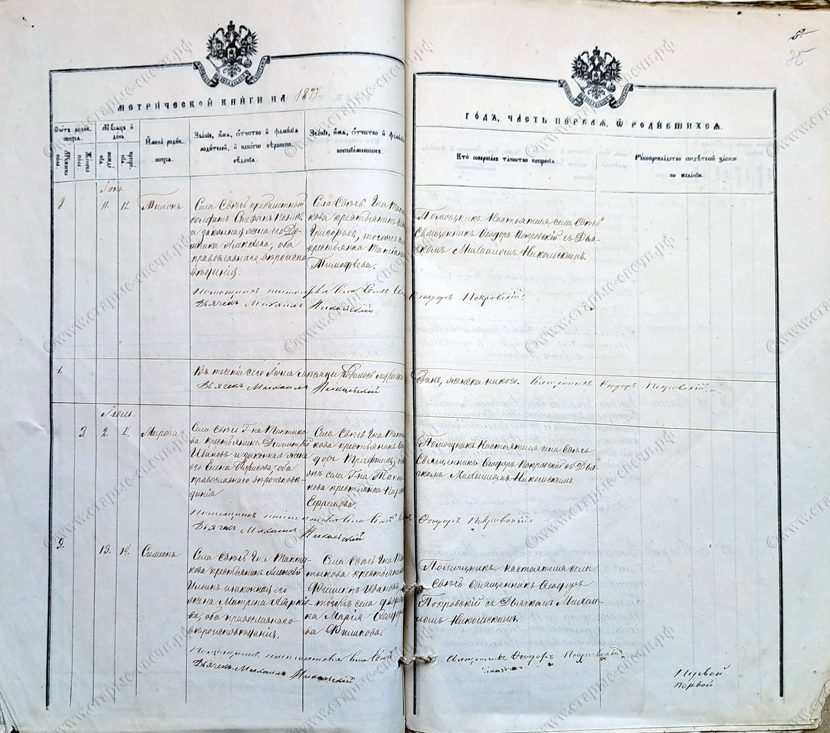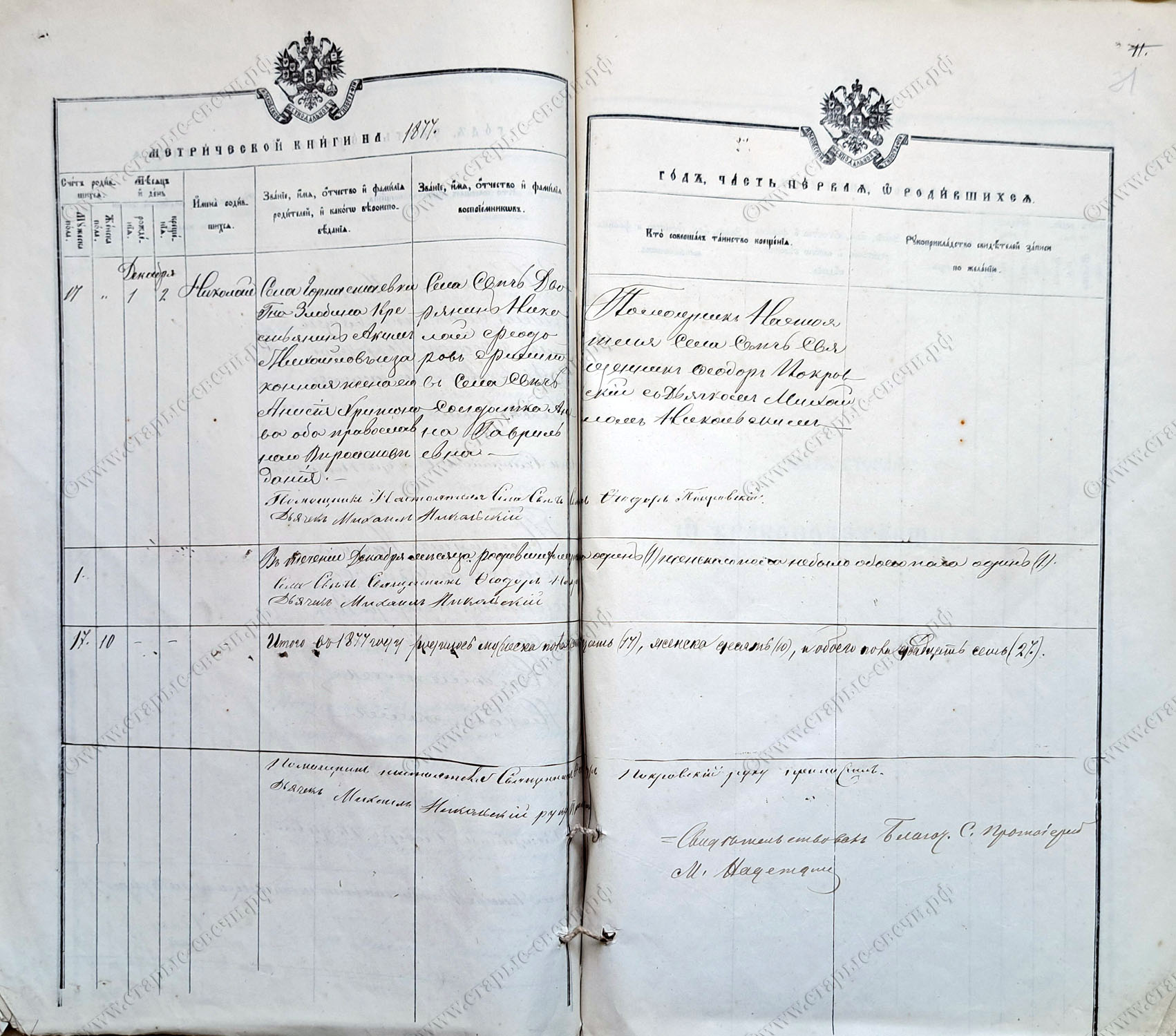 Метрическая книга за 1877 г.