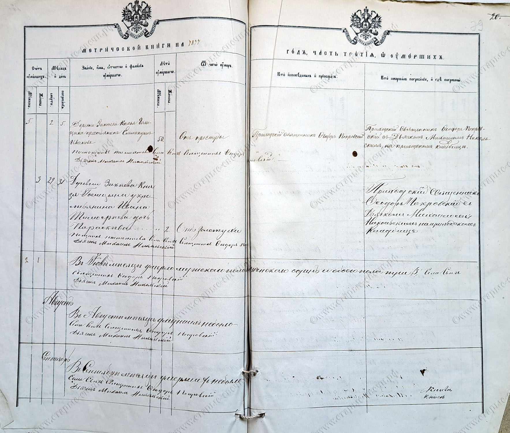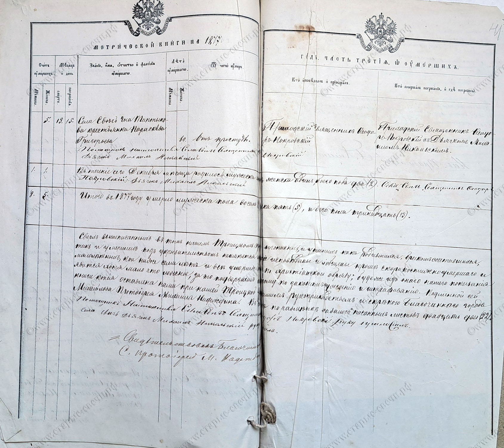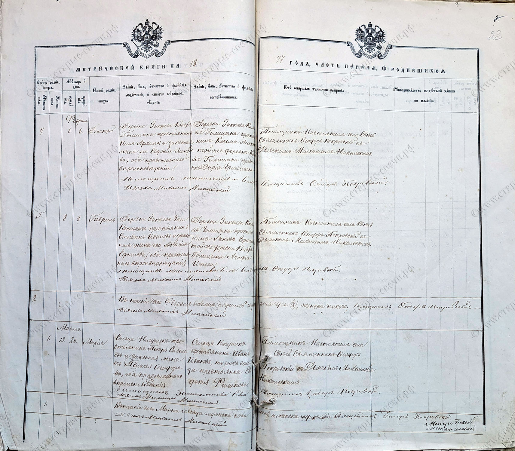 Метрическая книга за 1877 г.