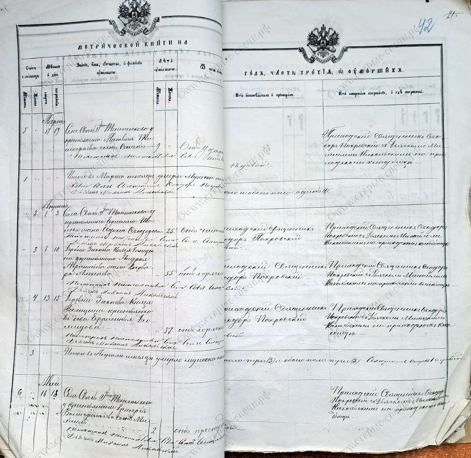 С Фёдором Покровским при церкви в этот период были также заштатный причетник Адриан Газов (1872 г.), временно допущенный до исполнения должности причетника с предоставлением права пользоваться половиной причетнического дохода,
