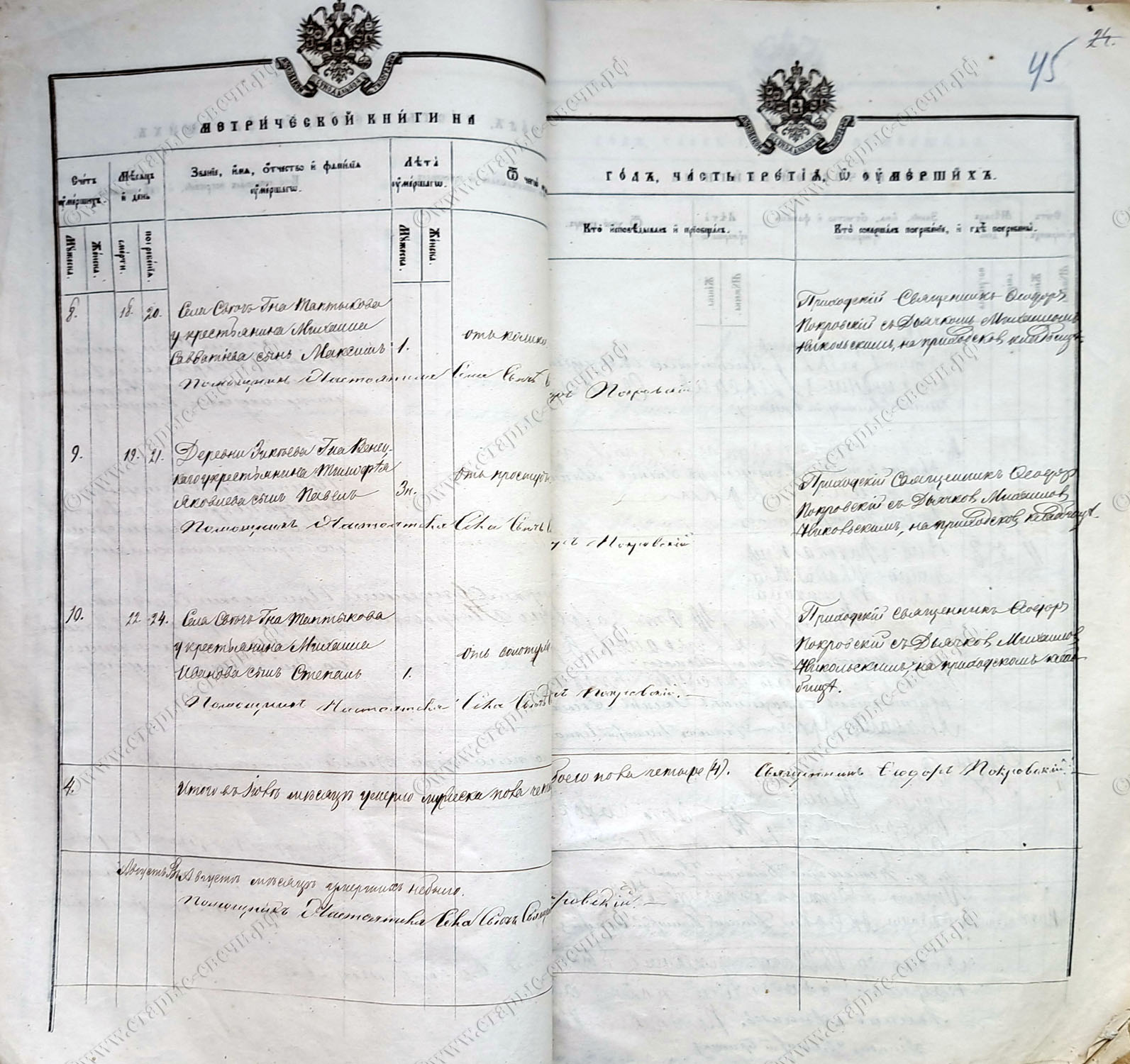 действительности до этого возраста. Доподлинно известно, что он здравствовал по состоянию на 1867 год – дату рассмотрения съездом Мировых посредников проекта разверстания господских земель, – когда ему было 79 лет. В любом