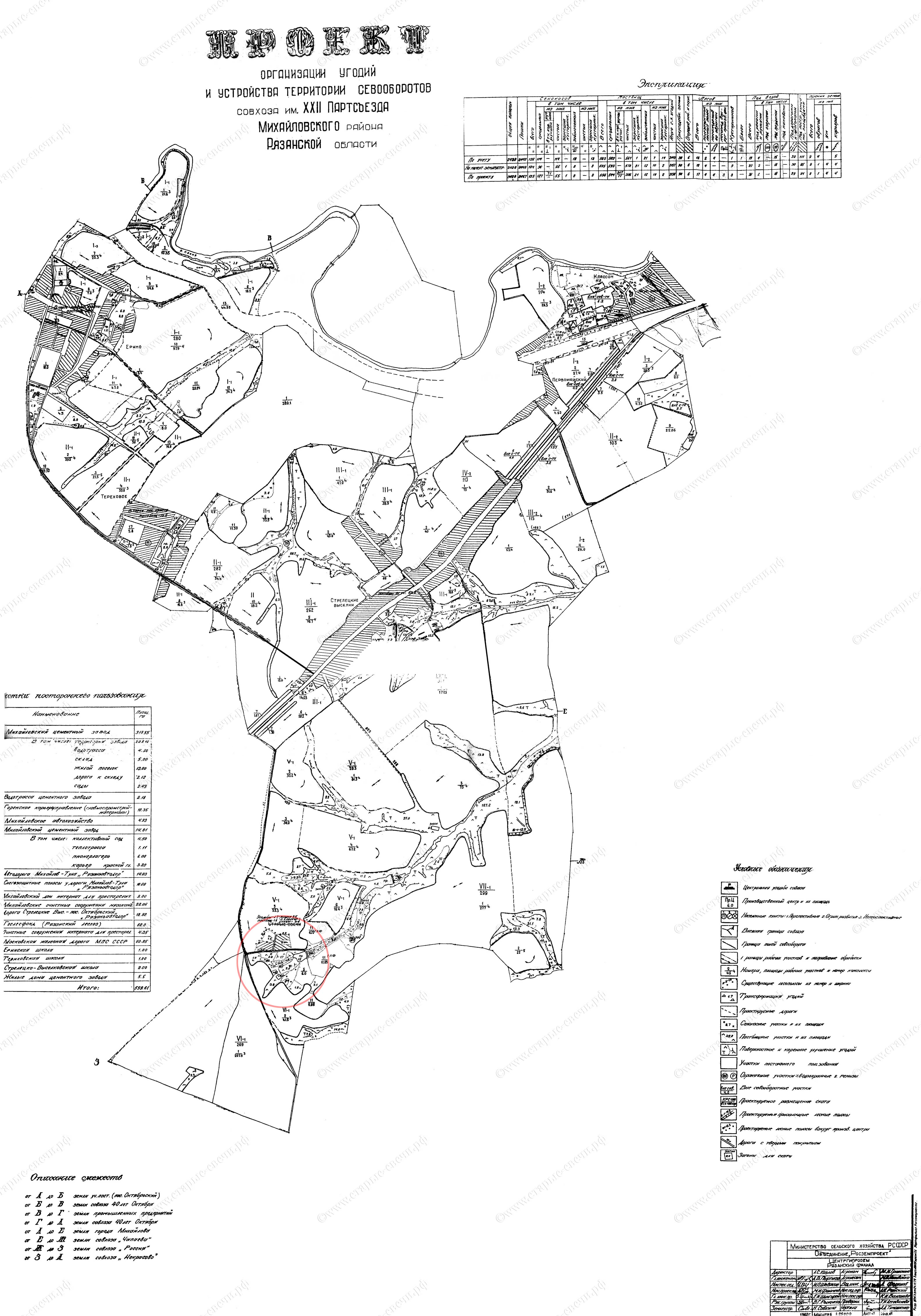 На карте проекта «организации угодий и устройства территории севооборотов совхоза имени XXII Партсъезда» от 1979 года населённые пункты поделены условными обозначениями на три категории: перспективные, ограниченного развития и
