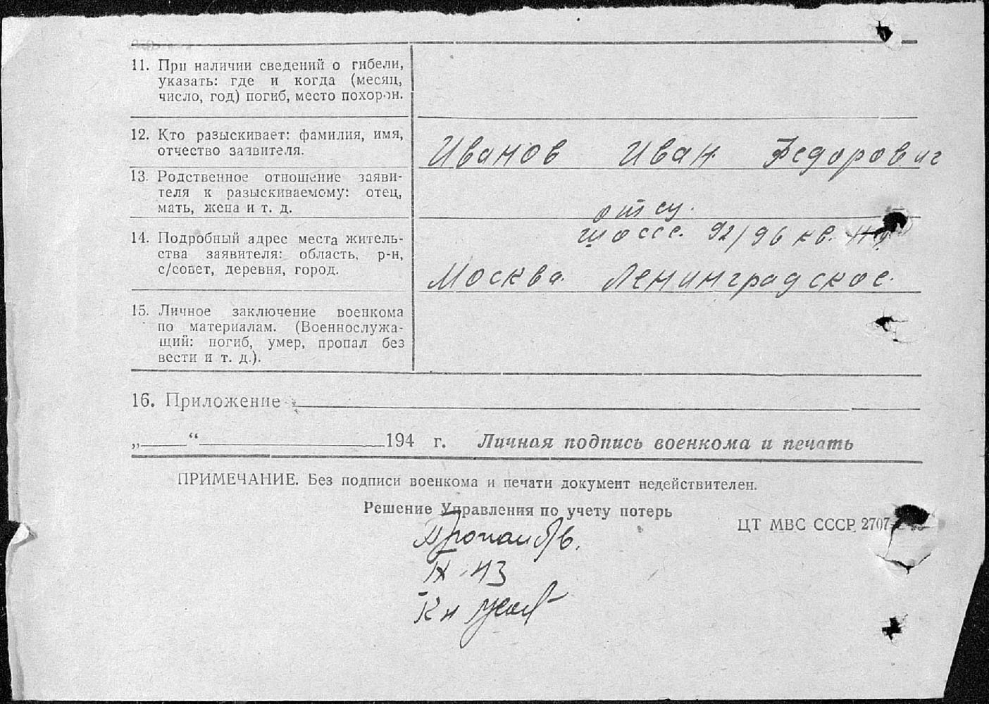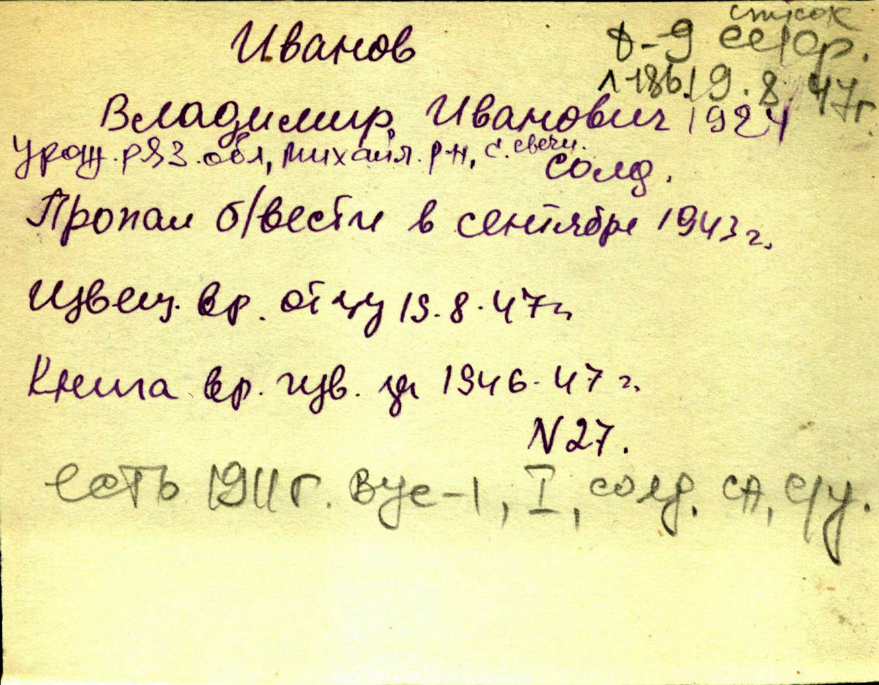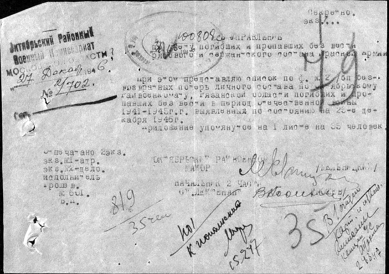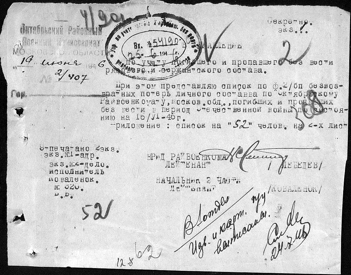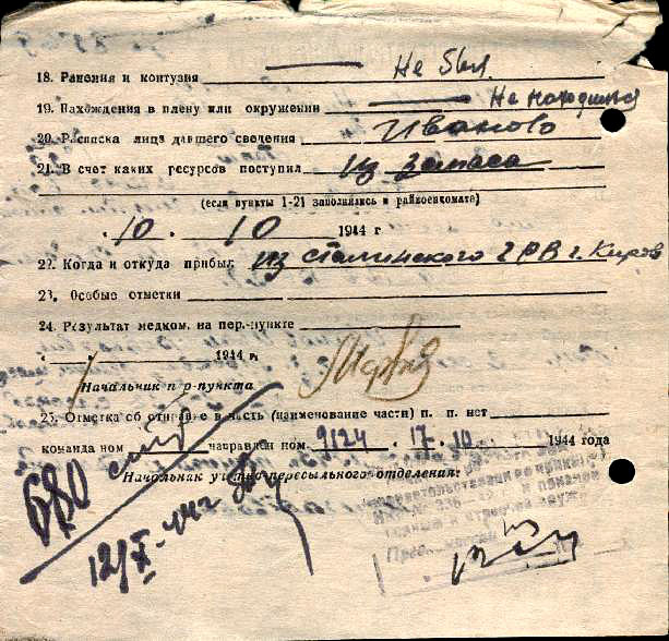 После войны восстановить документы не удалось: ни в местном военкомате, ни в центральном архиве никаких сведений не было. В военкомате работали люди, хорошо знавшие Павла Петровича, но помочь ничем не могли: архивы были вывезены и по дороге где-то пропали. Получалось, что он нигде никогда не работал и дезертировал из армии. Однако с поддержки знавших его людей выяснять, где он был во время войны, не стали и назначили грошовую пенсию.