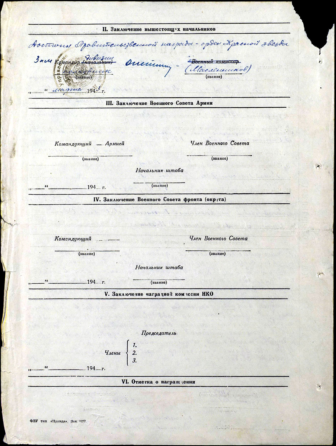 ЦАМО, ф. 58, оп. 18004, д. 206.