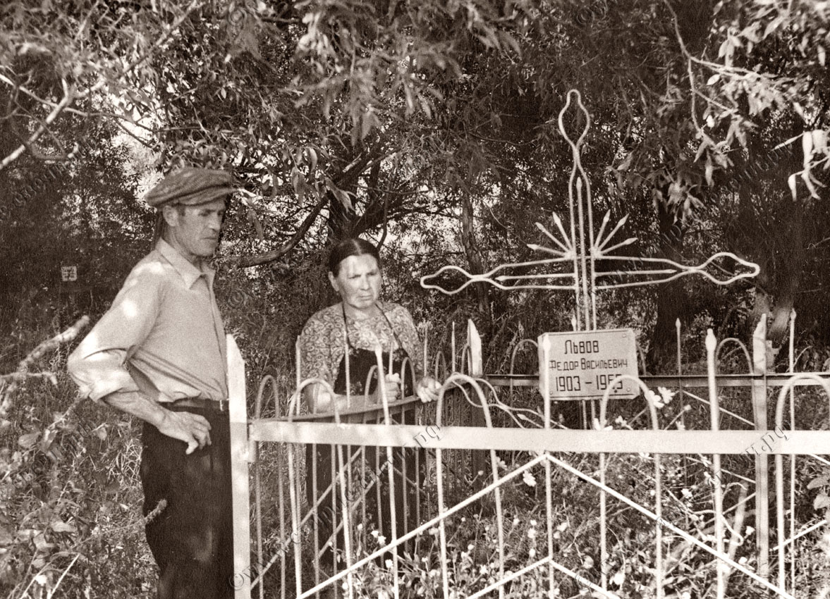 Начало 1970-х. Полина Васильевна Иванова (Львова) с В. С. Королёвым на могиле родителей, брата и сестры