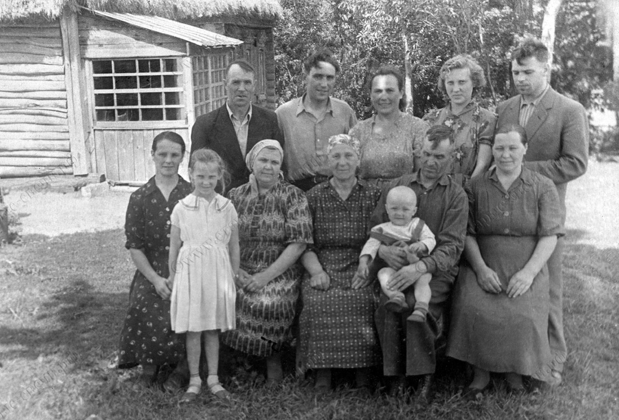 1960-й год. Зикеевцы у дома Львовых. Верхний ряд (слева направо): Василий Сергеевич Королёв, супруги Анатолий и Раиса (соседи Королёвых), Любовь Фёдоровна Иудина (в девичестве Львова) с мужем Борисом Иудиным. Нижний ряд (слева направо): Анна Ивановна Королёва (в девичестве Львова, дочь Ивана Васильевича Львова), её дочка Любовь Королёва, неизв., неизв., (на руках) Владимир Иудин (сын Любови Фёдоровны и Бориса), Фёдор Васильевич Львов (отец Любови Фёдоровны), Клавдия Львова (жена Фёдора Васильевича)